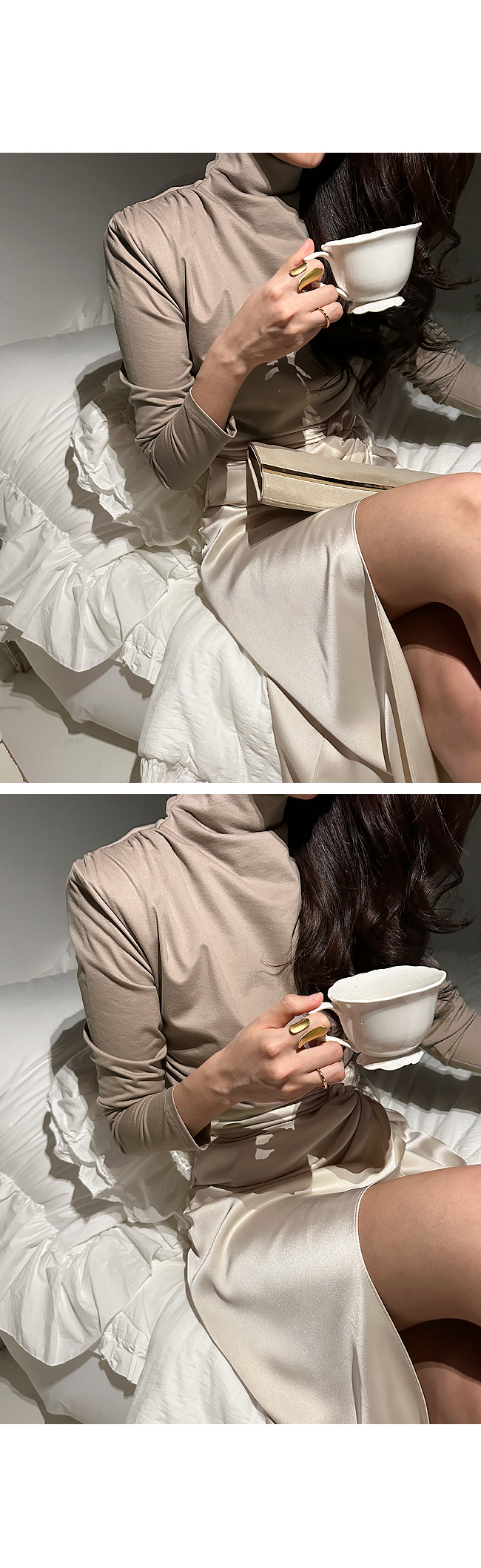 이런 목폴라 티셔츠는 저처럼 똥배 뚠뚠이도, 날씬이 언니도, 체형에 상관없이 꼭, 소장 하고 계셨으면 좋겠어요.