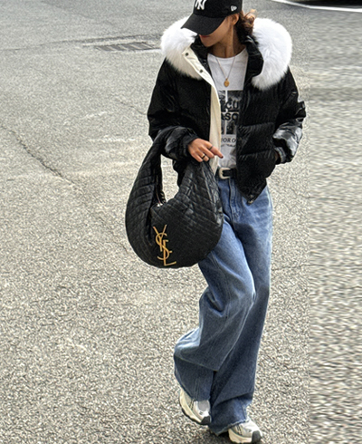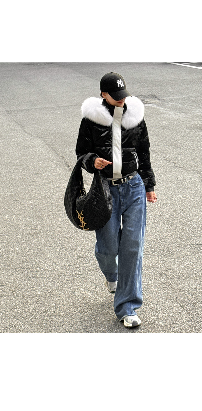 후드 퍼 디테일이 얼굴선을 부드럽게 감싸주며,