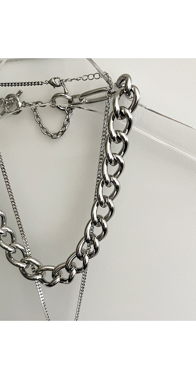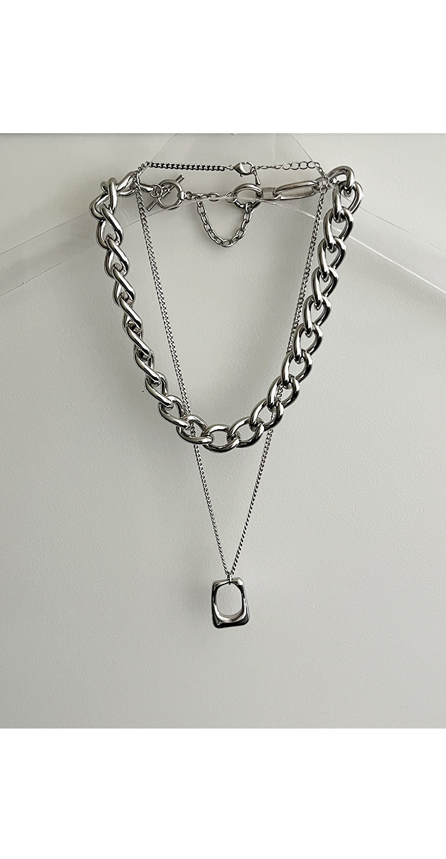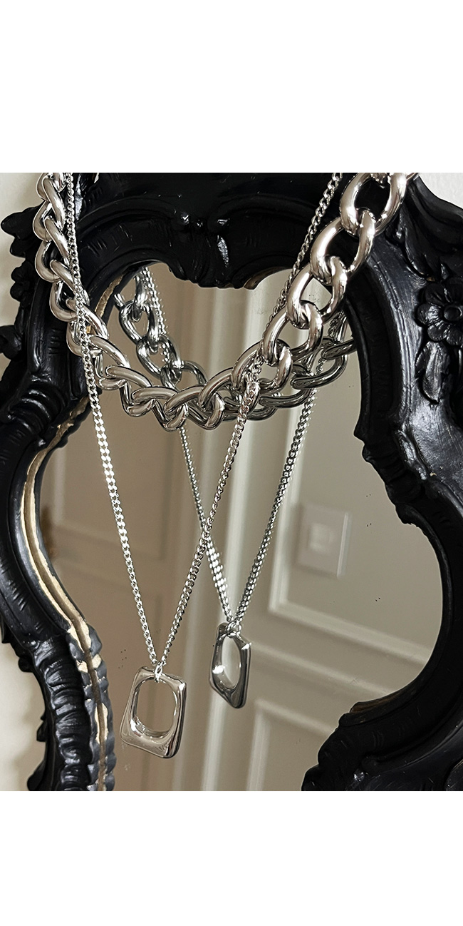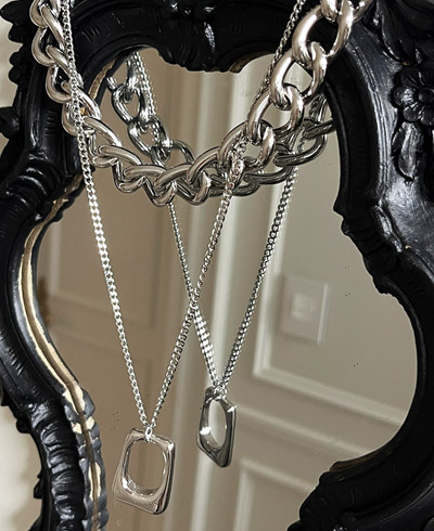 - 굵은 체인 네크리스와 미니멀한 펜던트 네크리스 세트