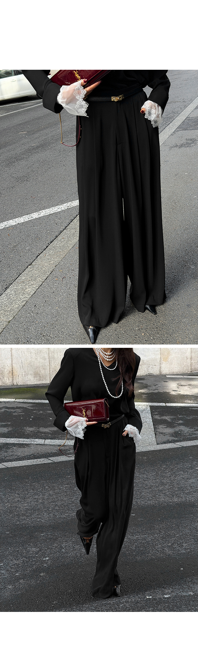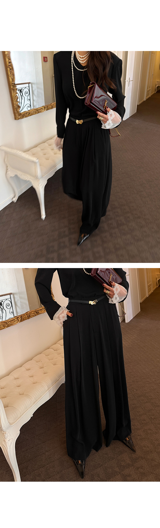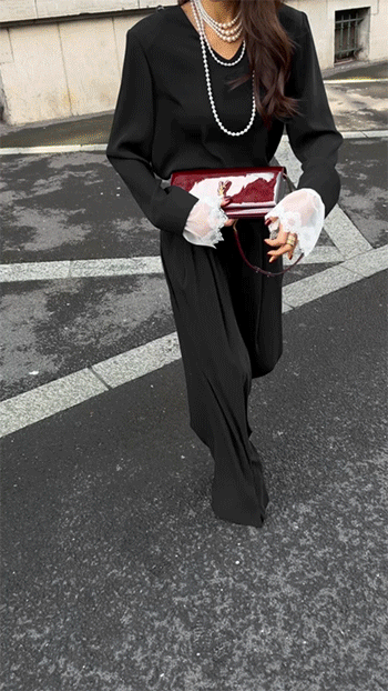 걸을 때마다 자연스럽게 흐르는 실루엣이 우아한 분위기를 더해주며