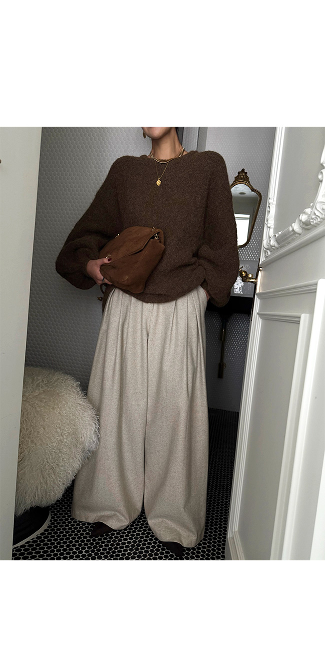 자연스러운 텍스처와 따뜻한 촉감이 느껴지는 팬츠예요.