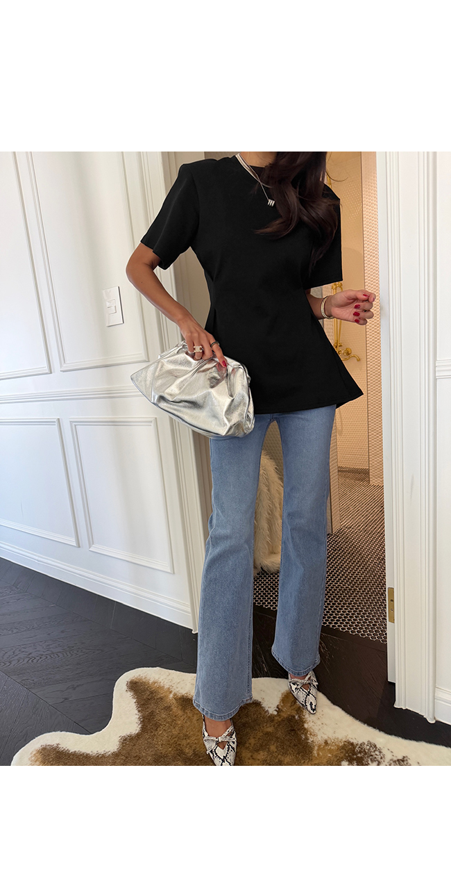 무릎 아래로 은은하게 퍼지는 부츠컷 핏으로