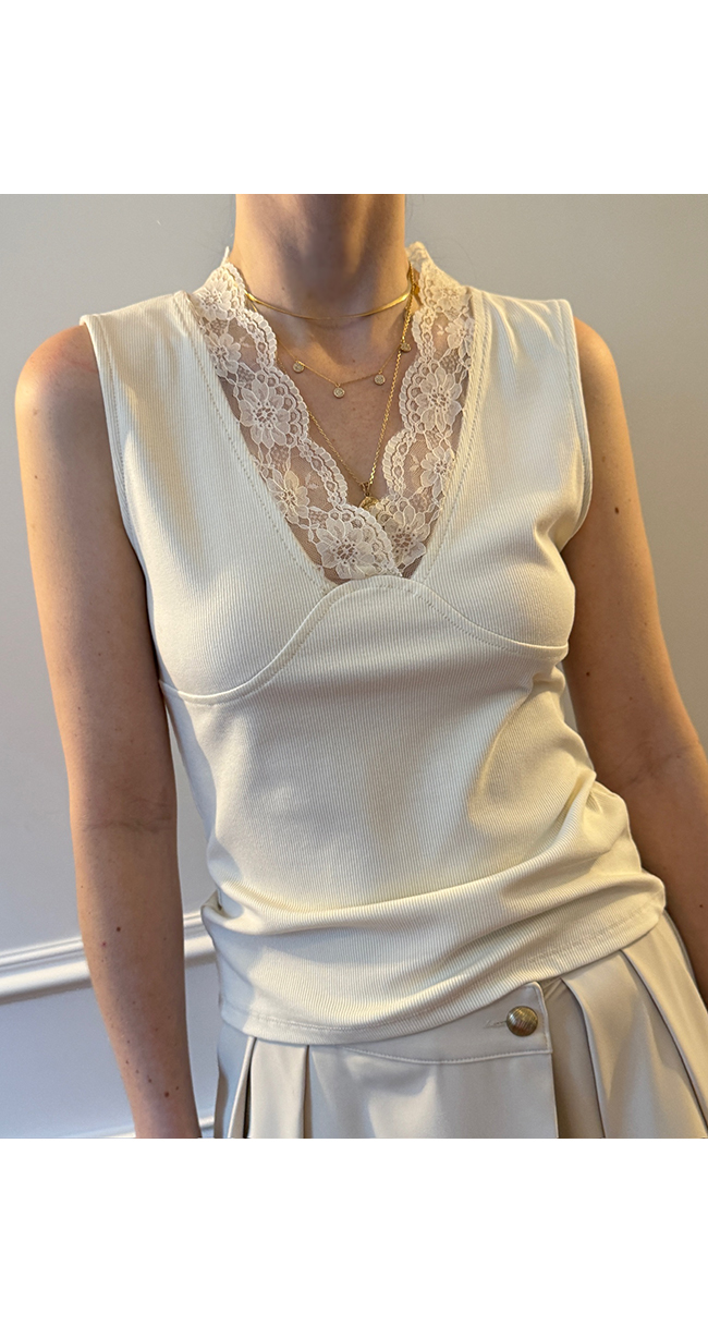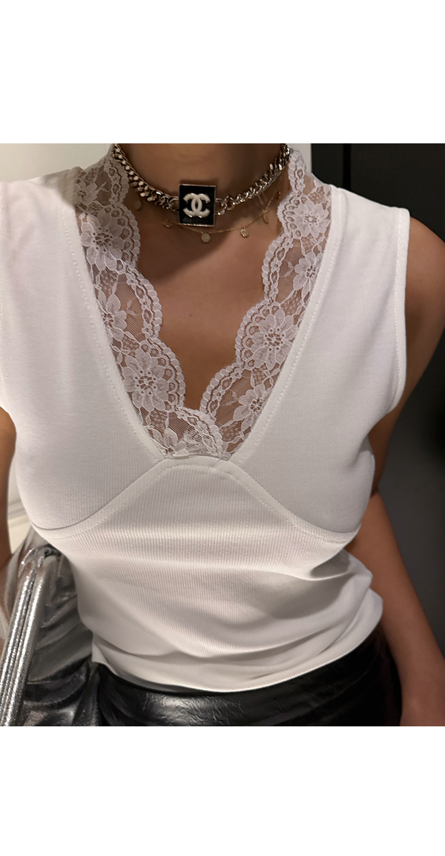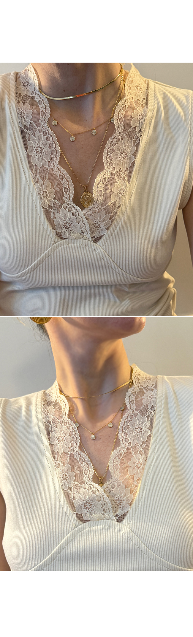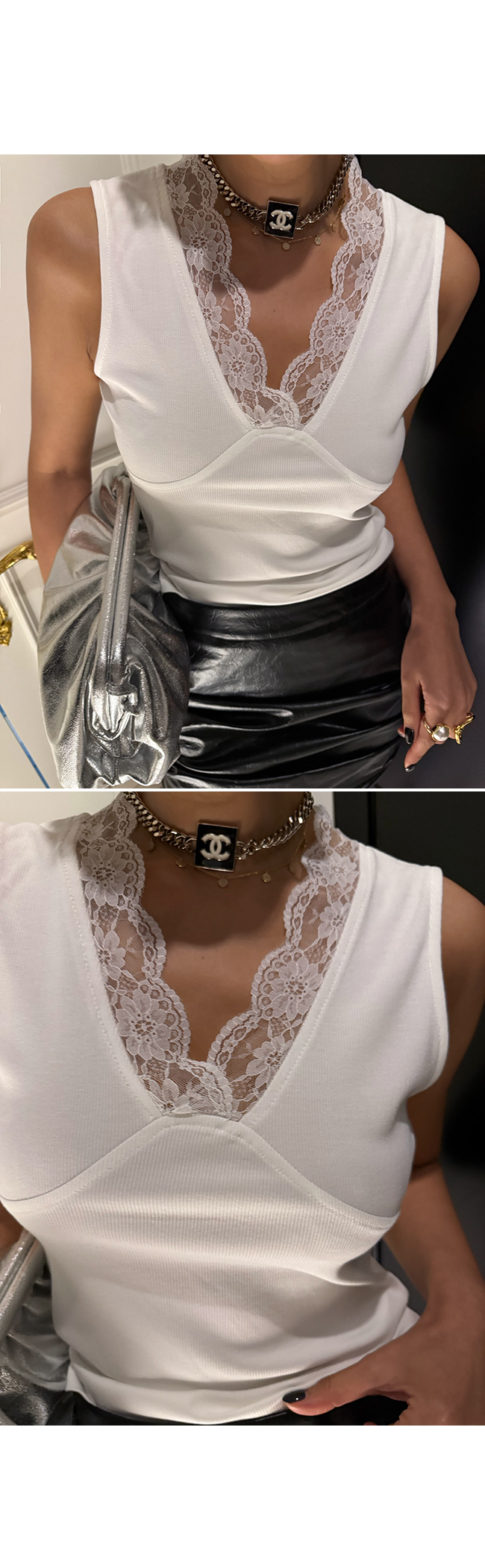 레이어드하여서 사계절 다 입을 수 있는 레이스 나시예요.