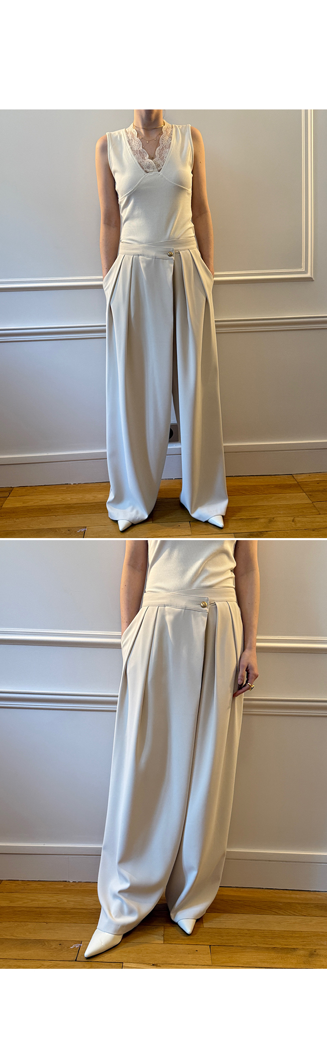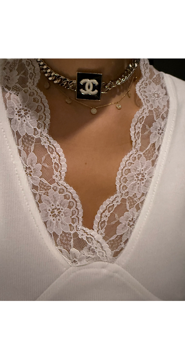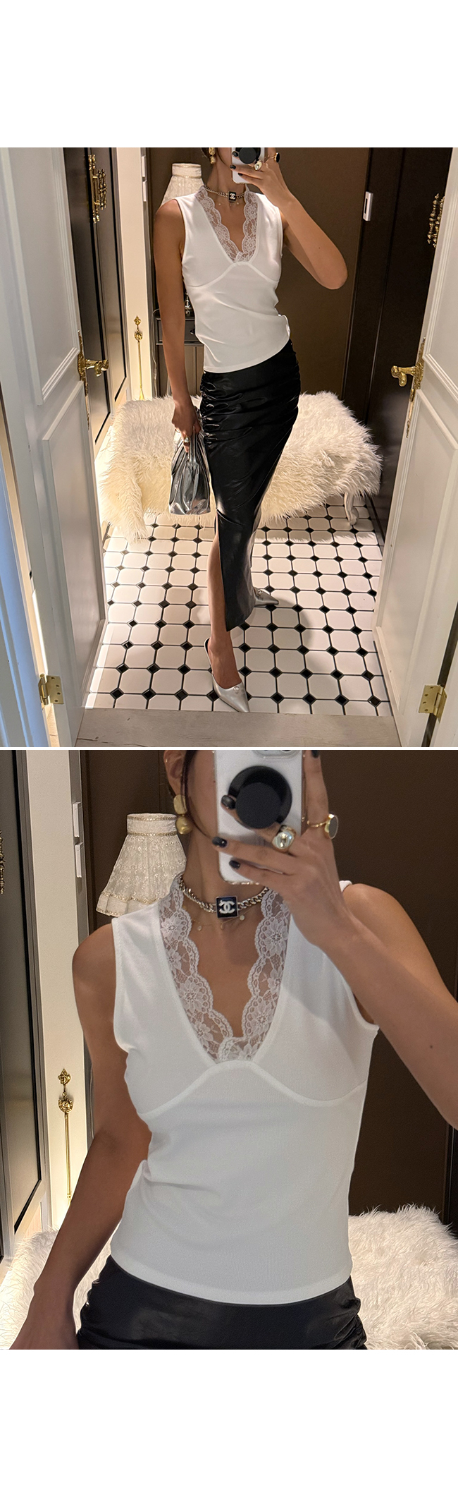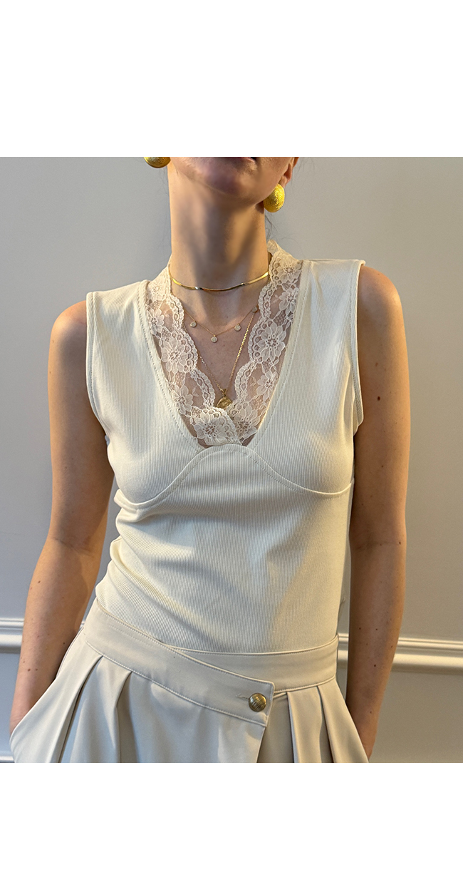 레이어드하여서 사계절 다 입을 수 있는 레이스 나시예요.