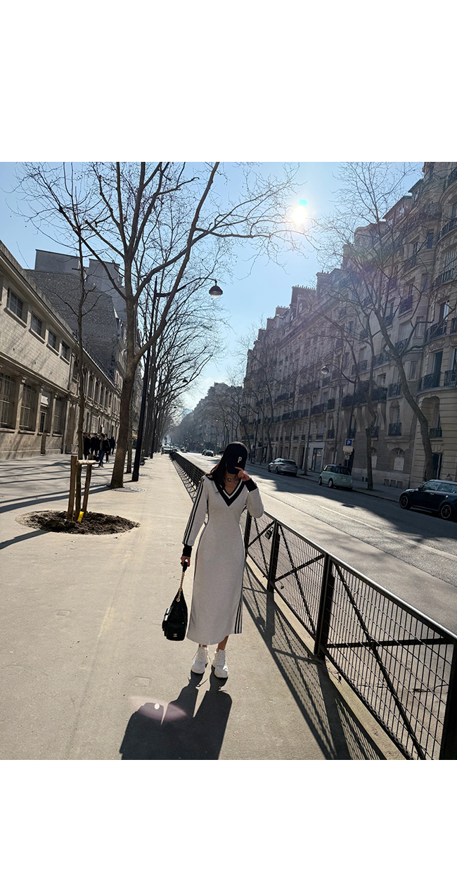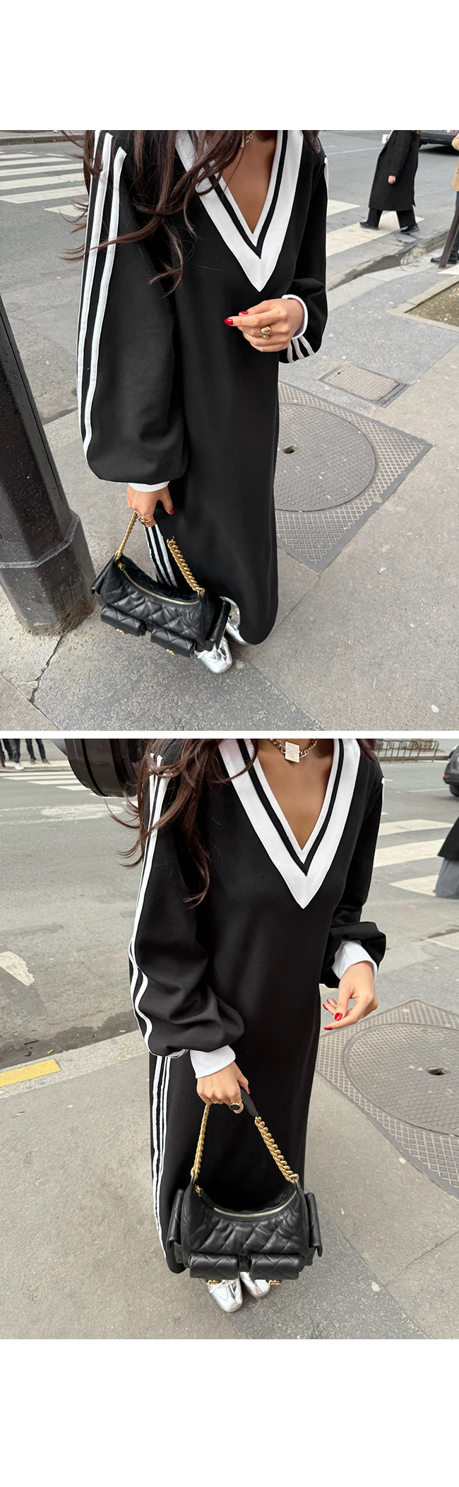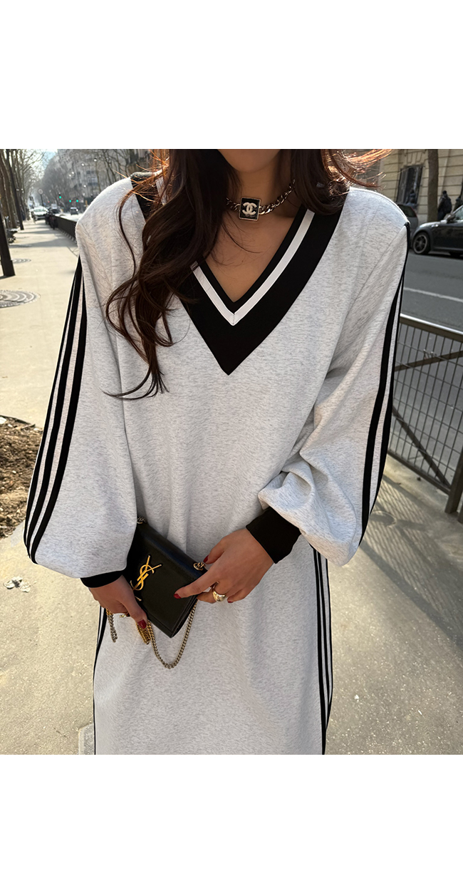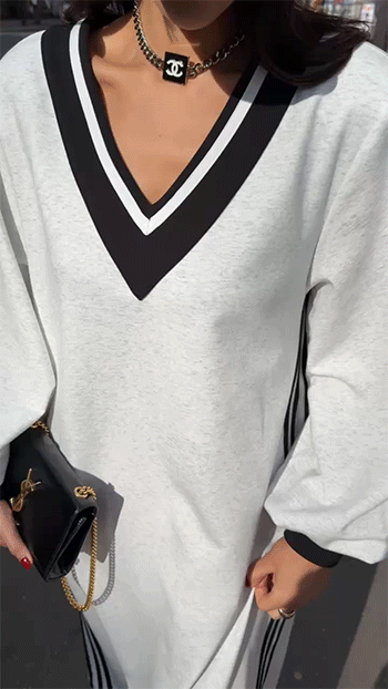 브이넥라인을 얼굴 라인을 살려주는 심플해 보이지만 멋부리지 않았는데 멋이나는 원피스예요.