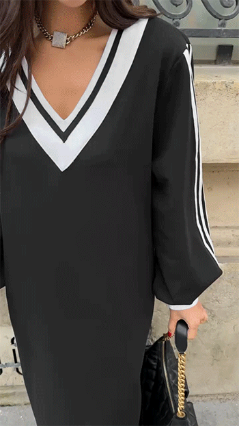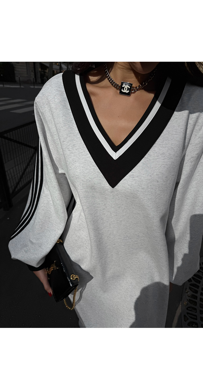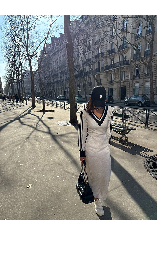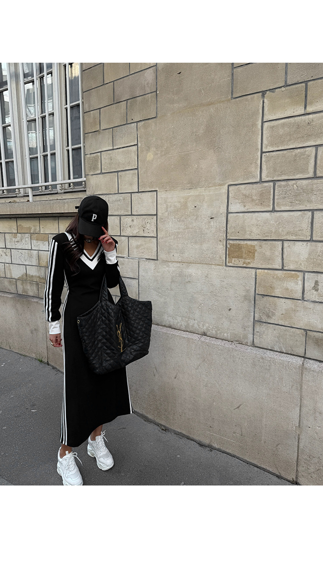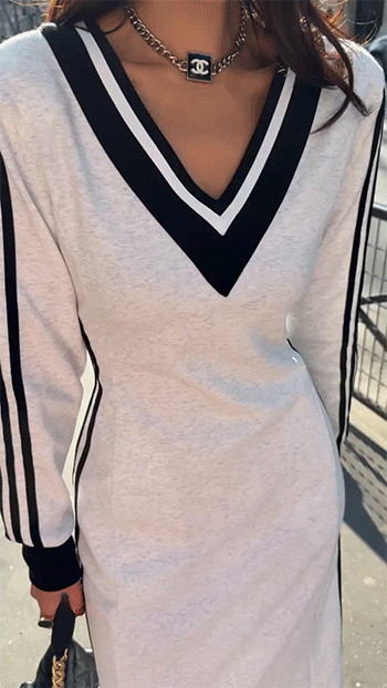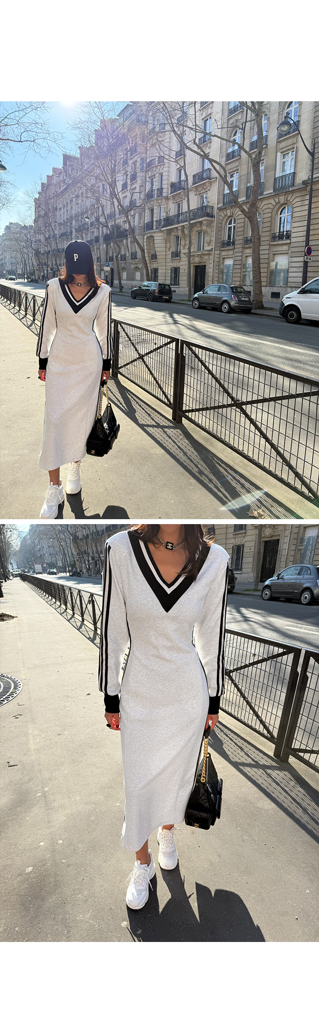 브이넥라인을 얼굴 라인을 살려주는 심플해 보이지만 멋부리지 않았는데 멋이나는 원피스예요.
