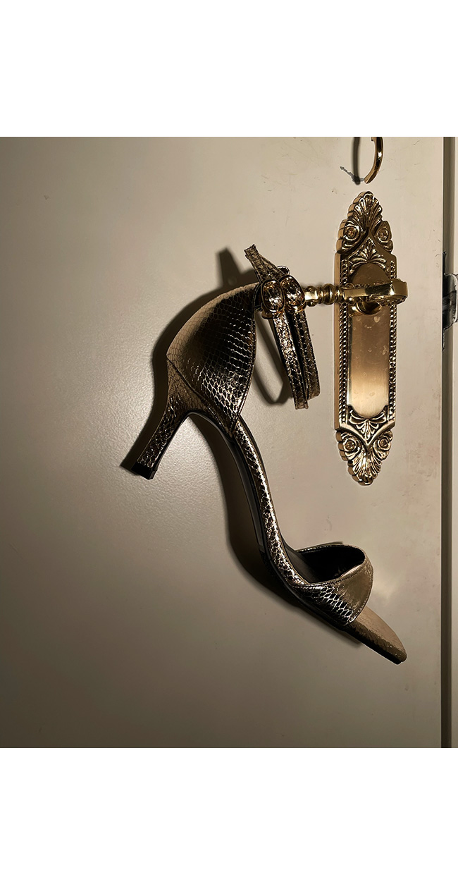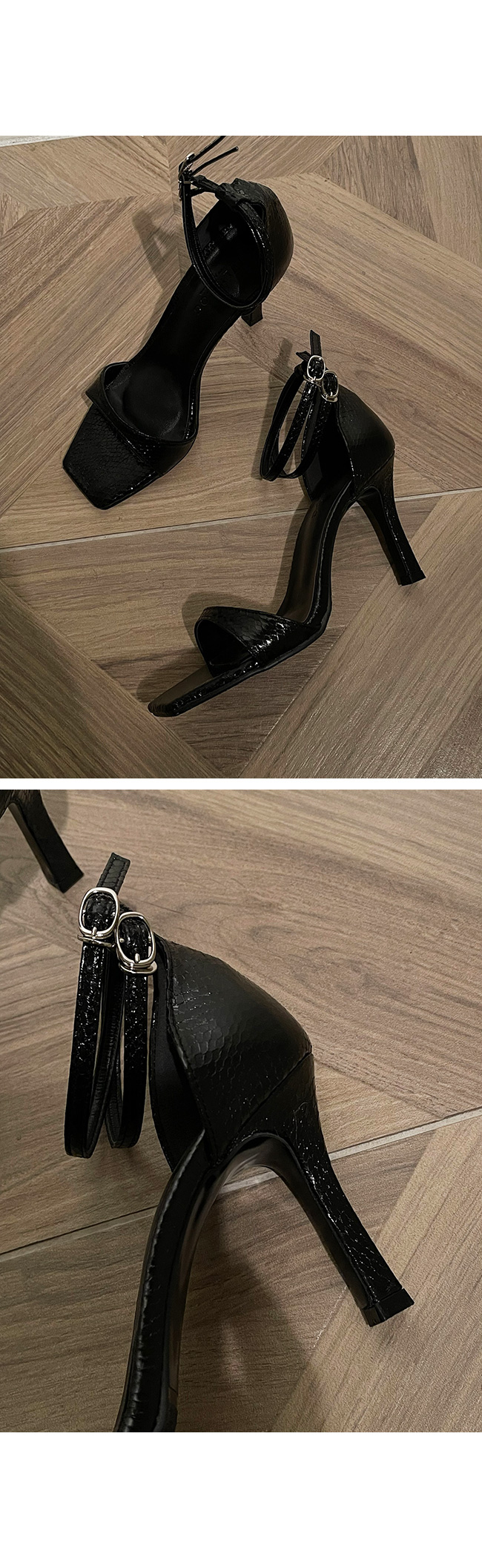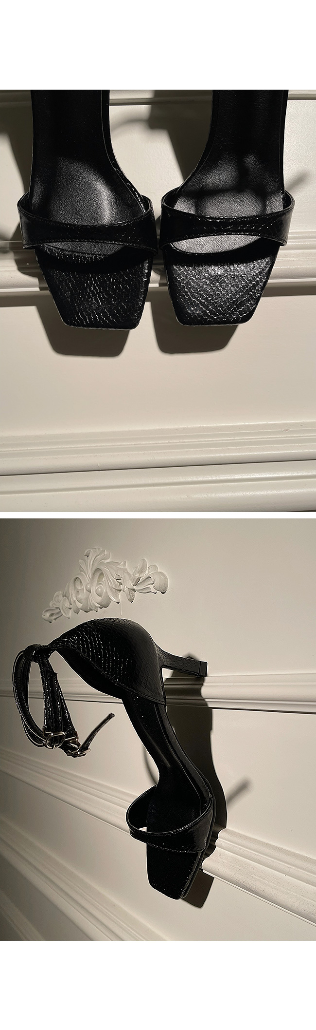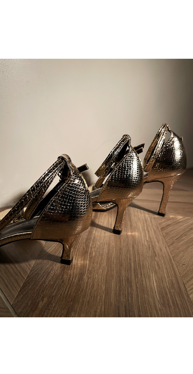 은은한 광택에 스네이크 패턴의 텍스처가 돋보이는 이 슈즈는,