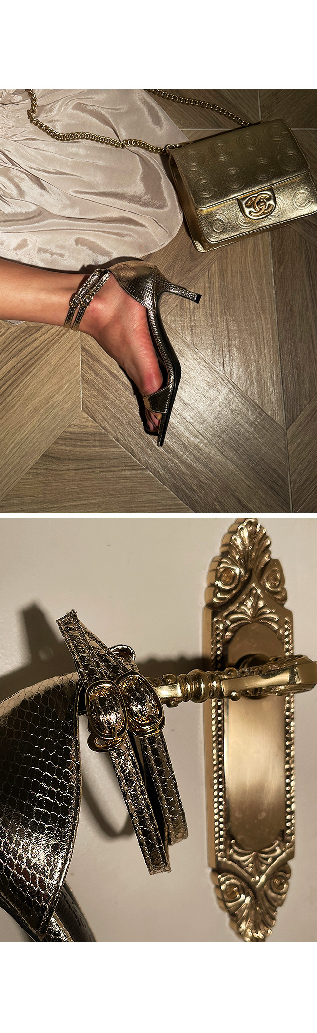 메탈릭 스트랩 샌들힐입니다.