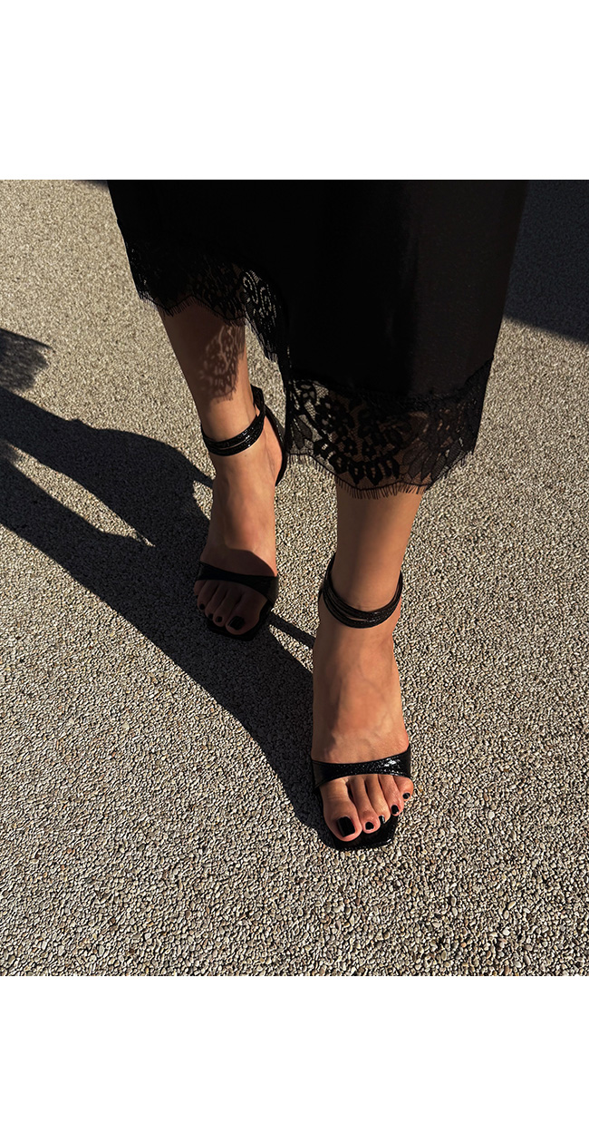 발목을 안정감 있게 잡아주는 이중 스트랩 디자인으로 실용성과 디자인을 동시에 만족시켜줍니다.