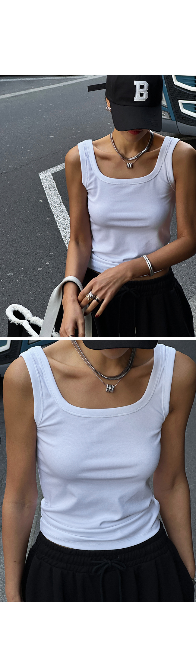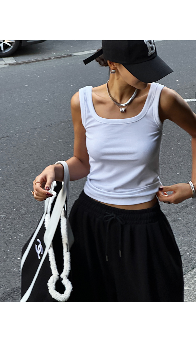스퀘어넥라인으로 스타일을 더해줘서