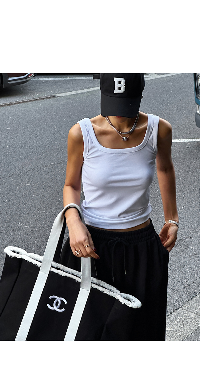 핏이 예쁘게 나오는 스퀘어넥나시예요.