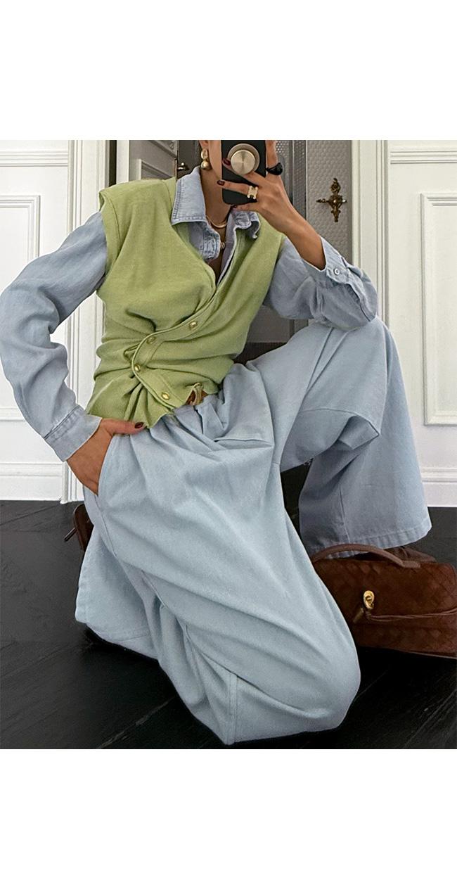 비대칭으로 여미면 드레이핑 효과를 주어