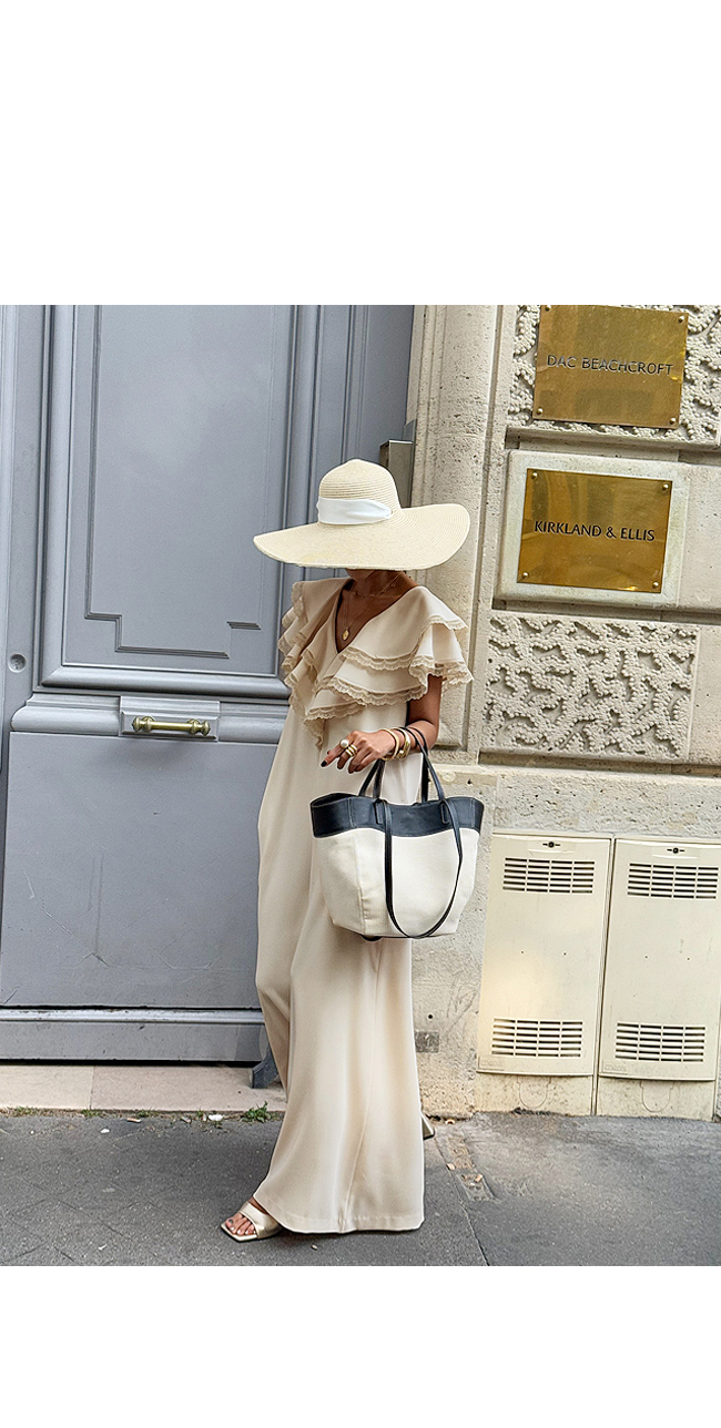 코디하기에도 좋은 줄로그표 쇼퍼백