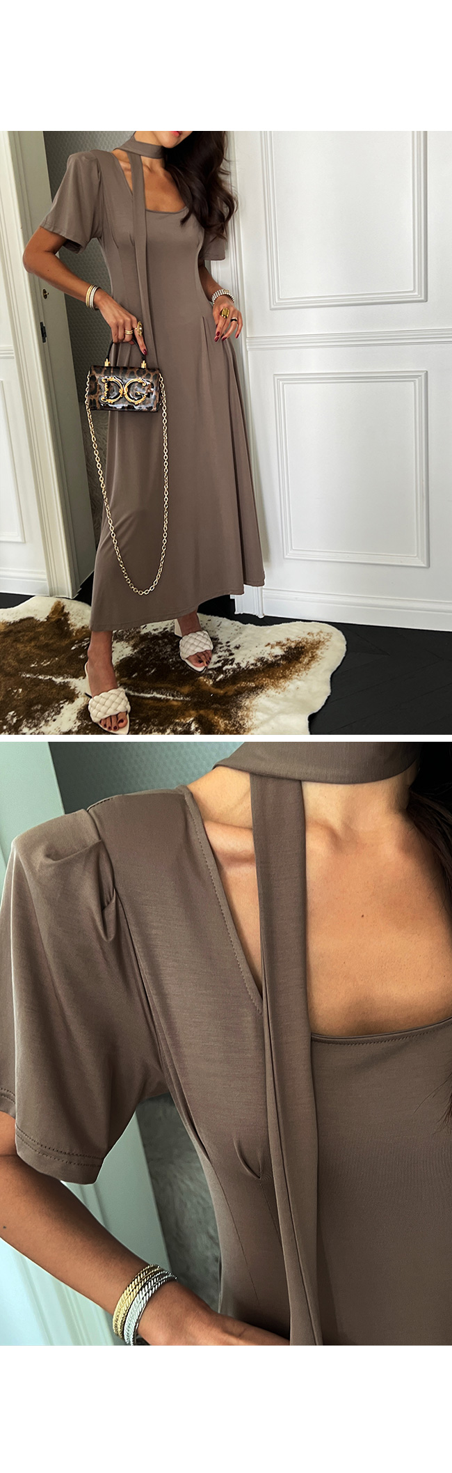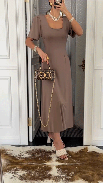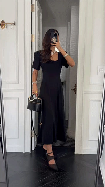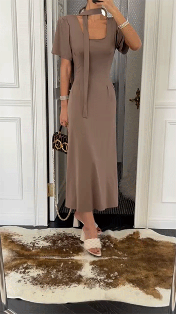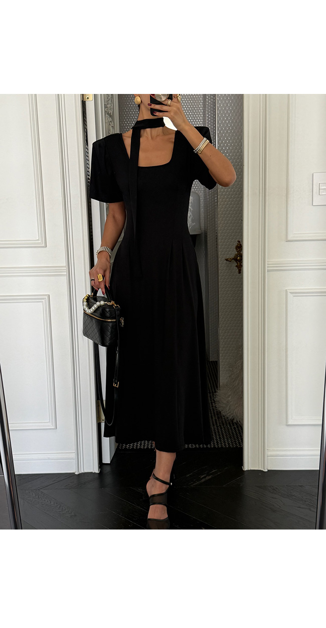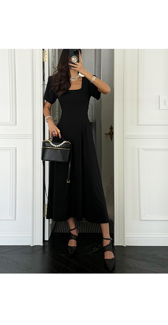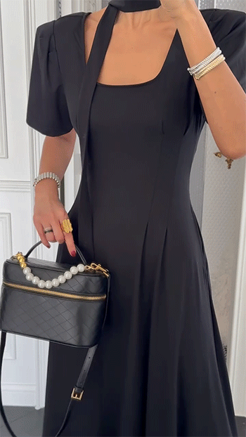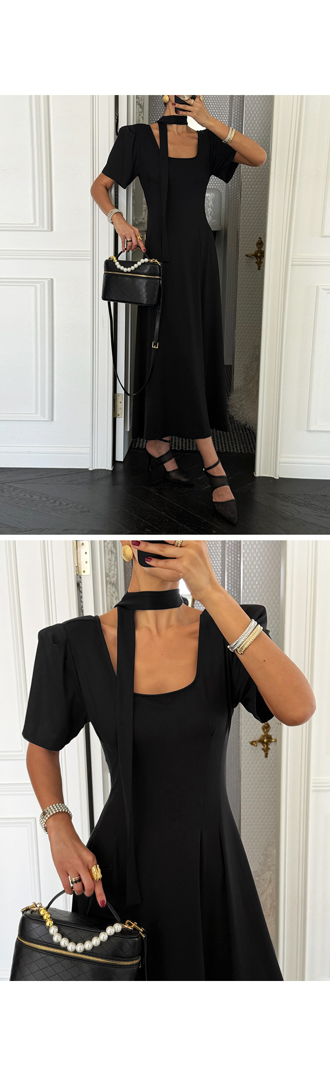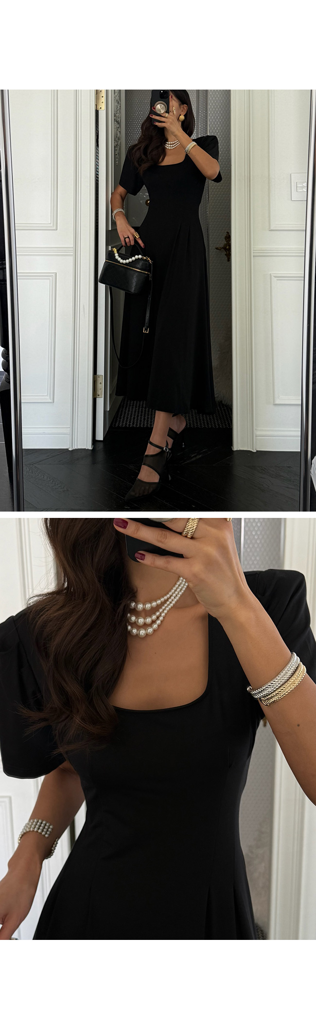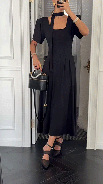 넥라인은 깔끔한 스퀘어넥 디자인으로