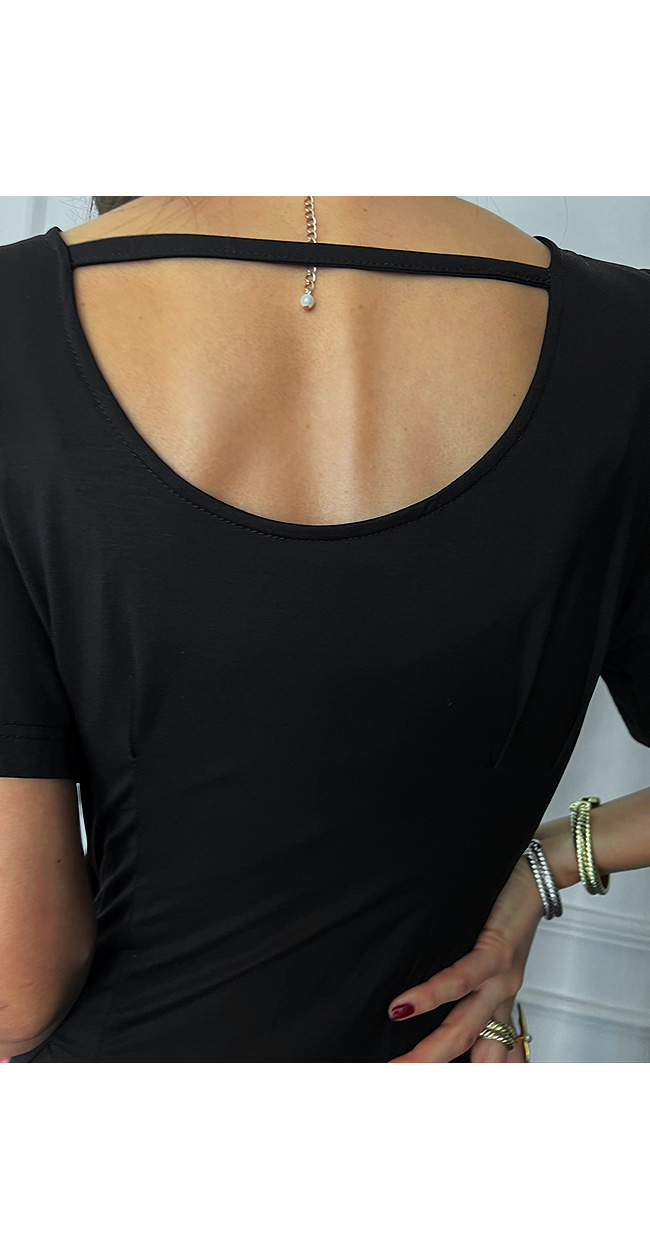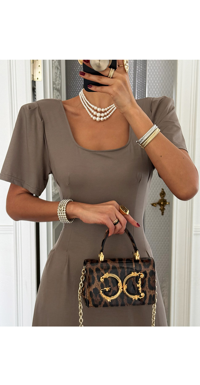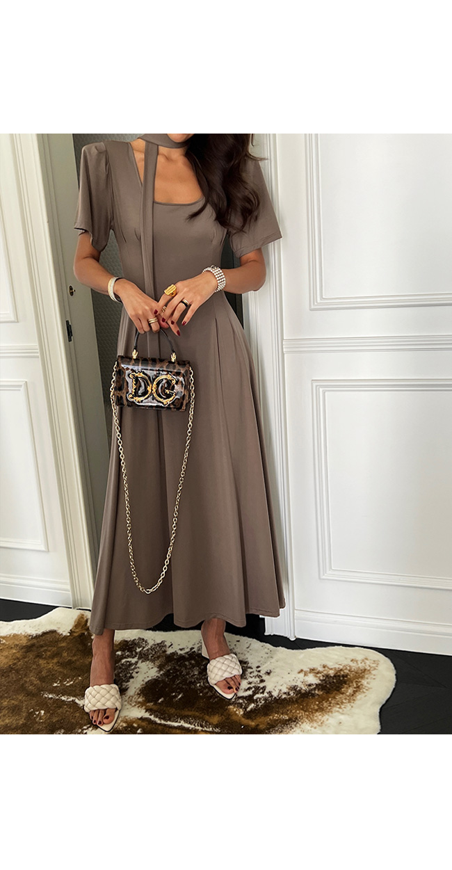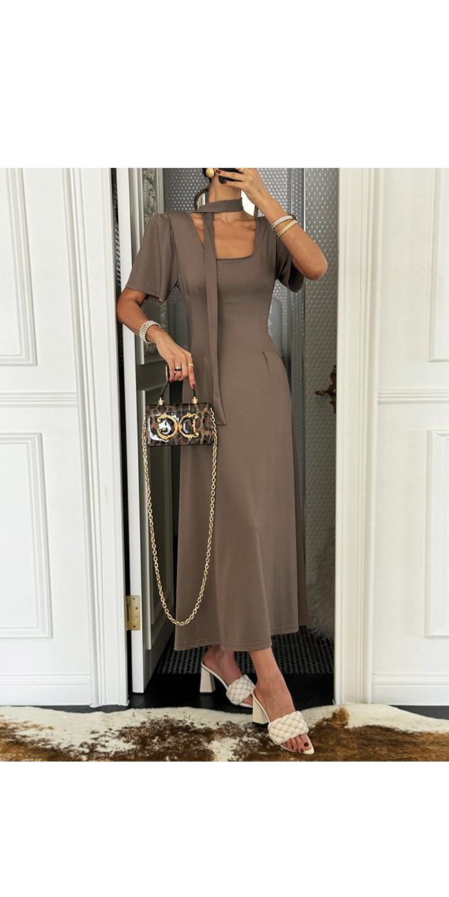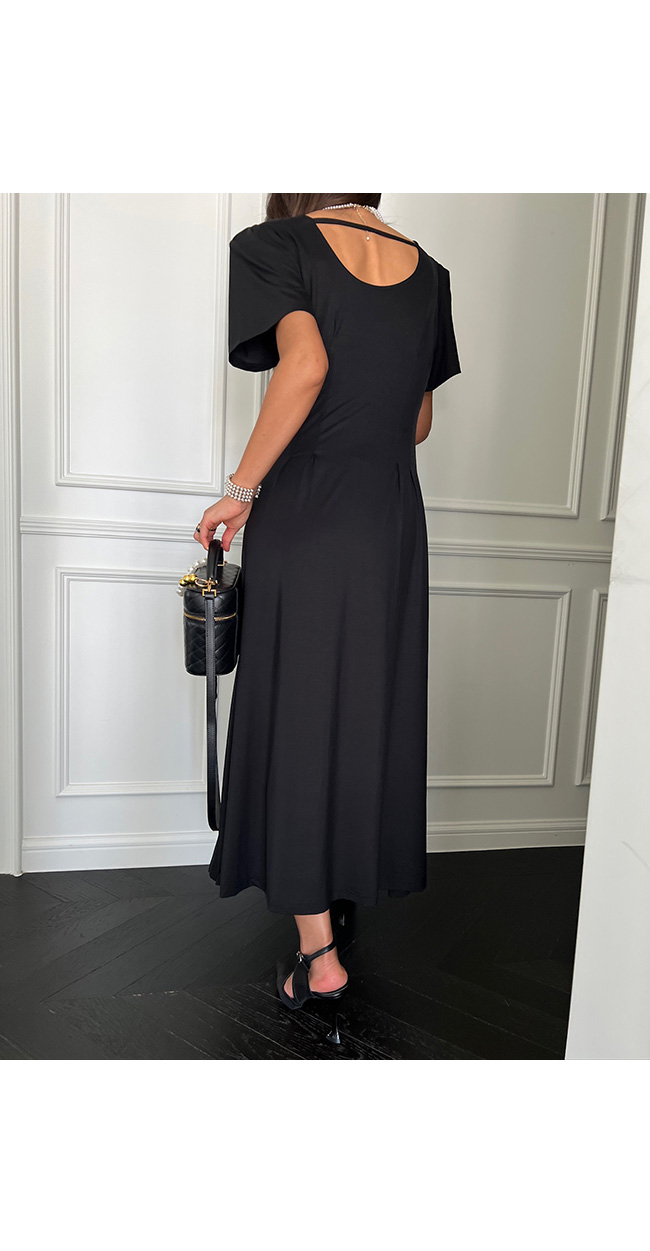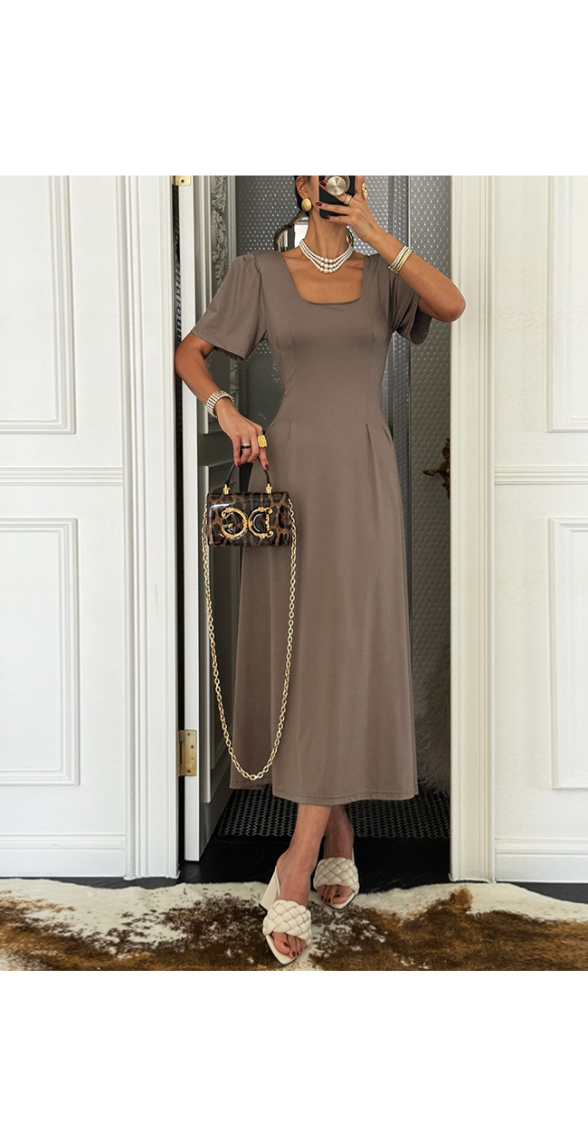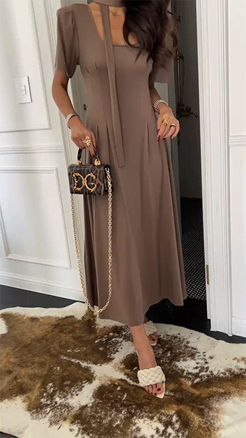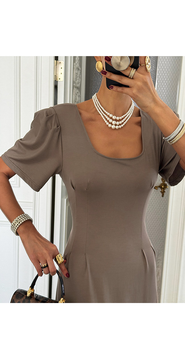 넥라인은 깔끔한 스퀘어넥 디자인으로