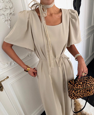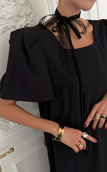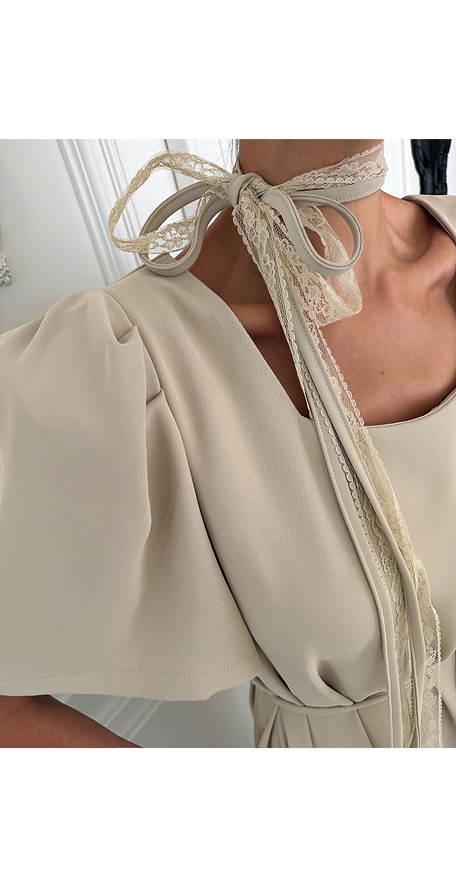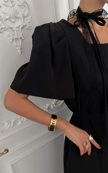 볼륨감 있게 잡힌 퍼프 소매 디테일이 더해져