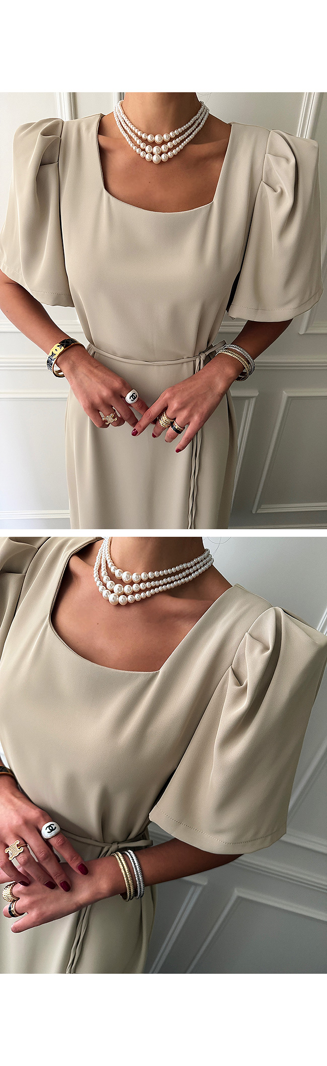 넥라인은 스퀘어 디자인으로