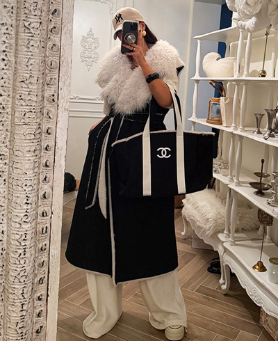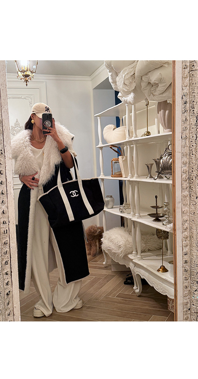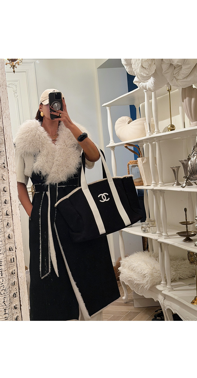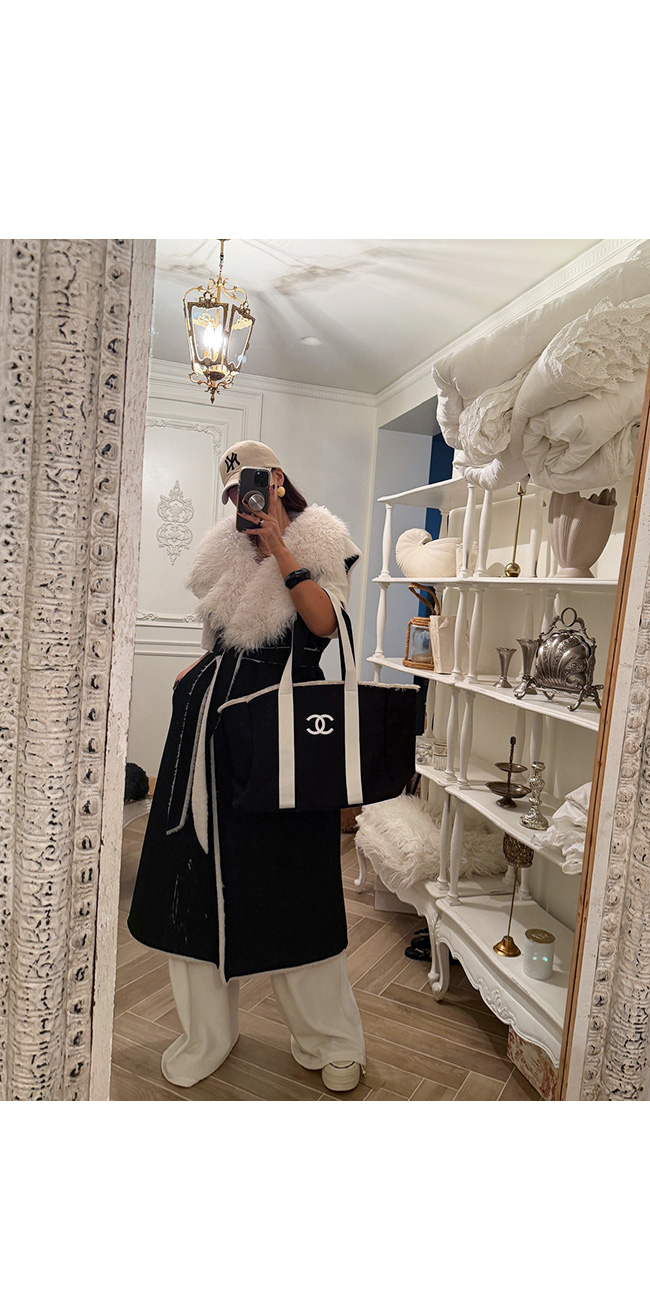 블랙 바디와 아이보리 퍼의 강렬한 대비가
