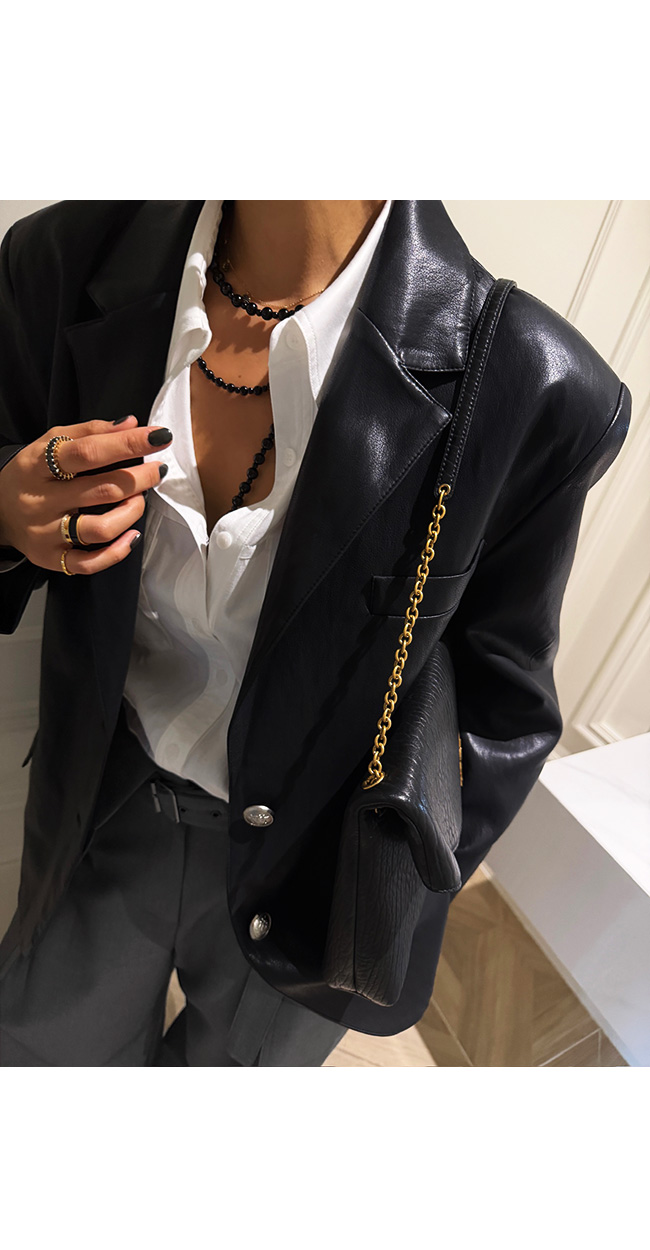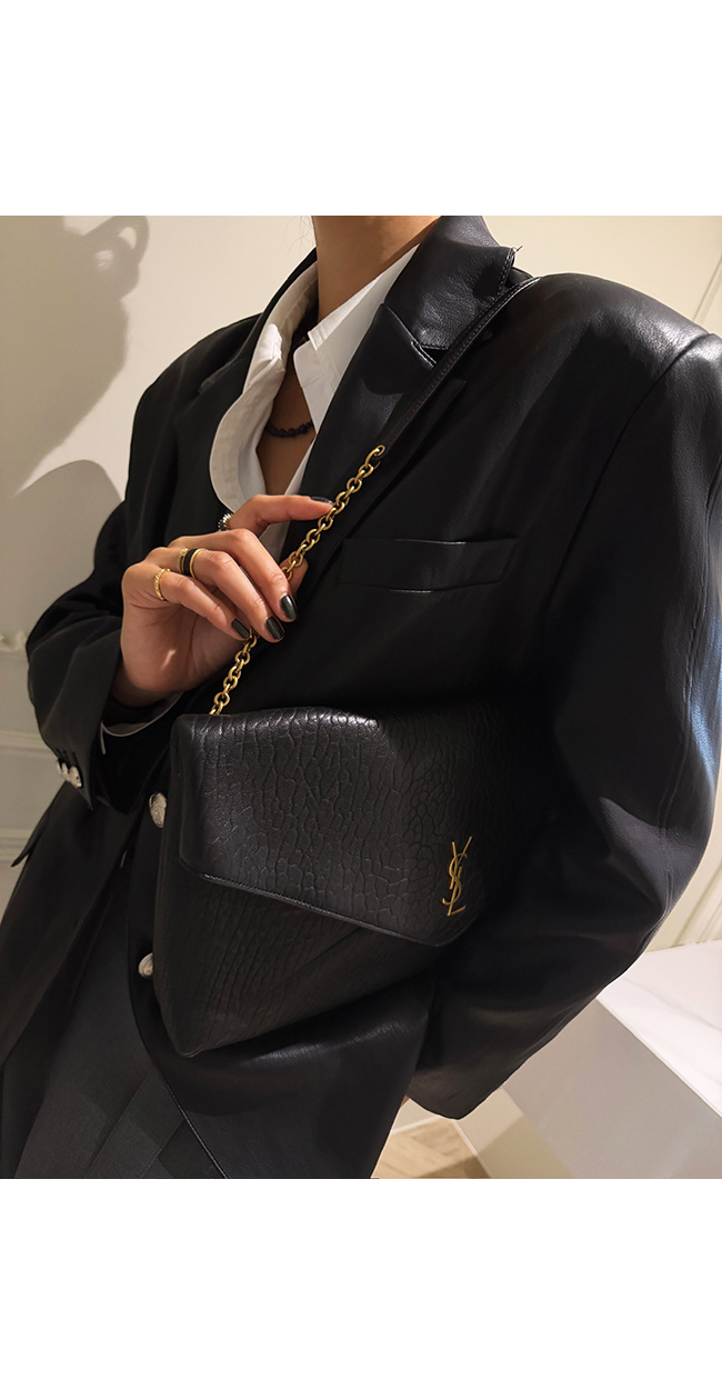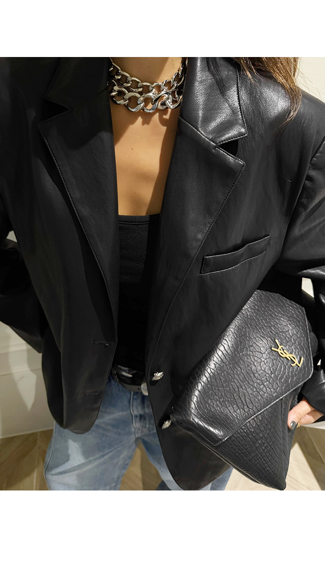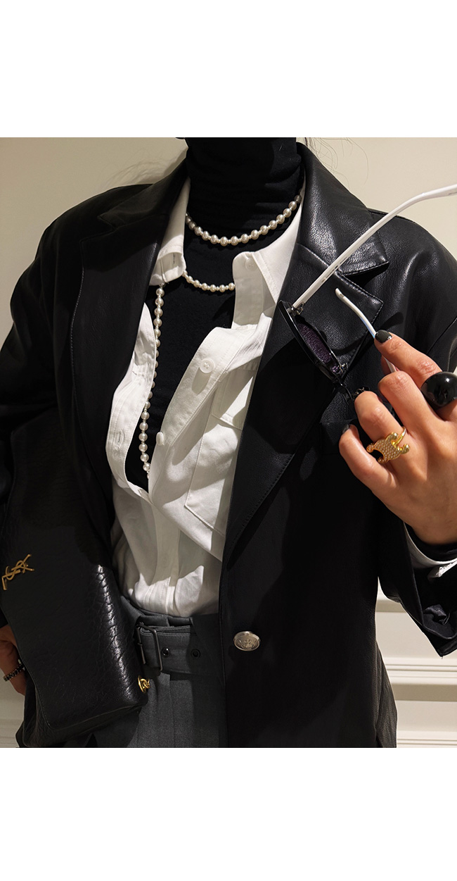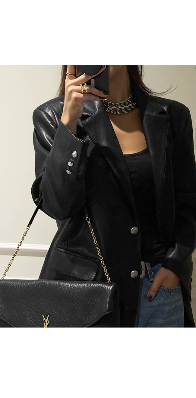 데님 팬츠와 함께 매치하면 시크한 데일리룩으로,