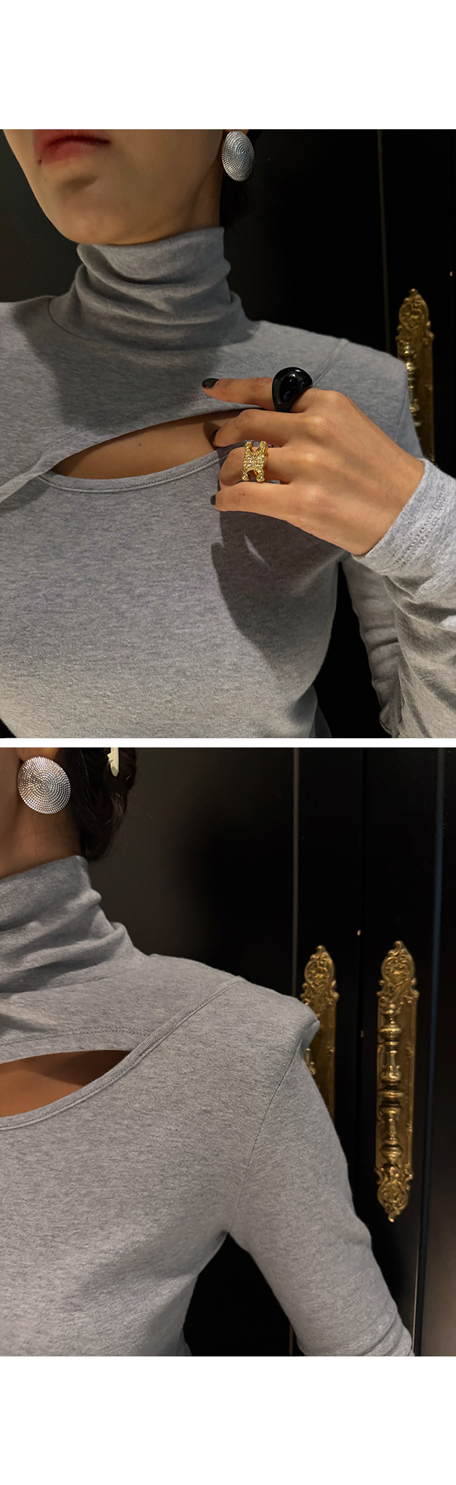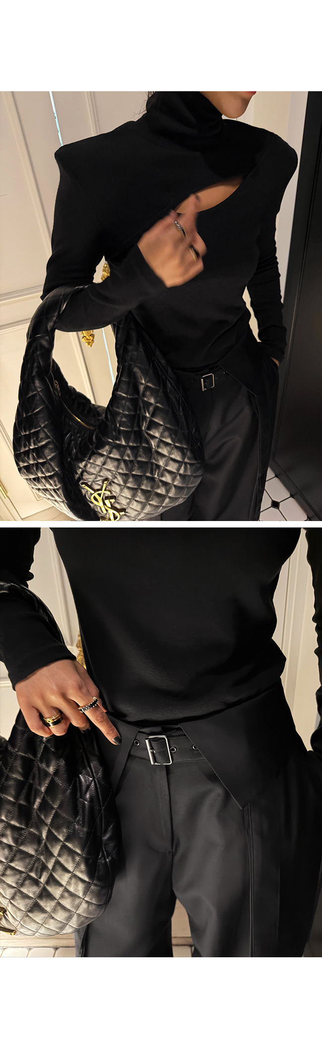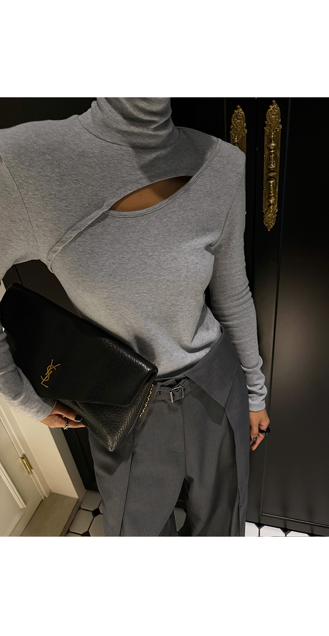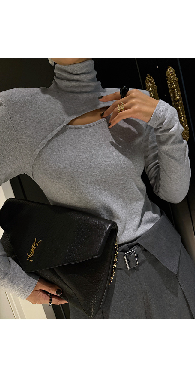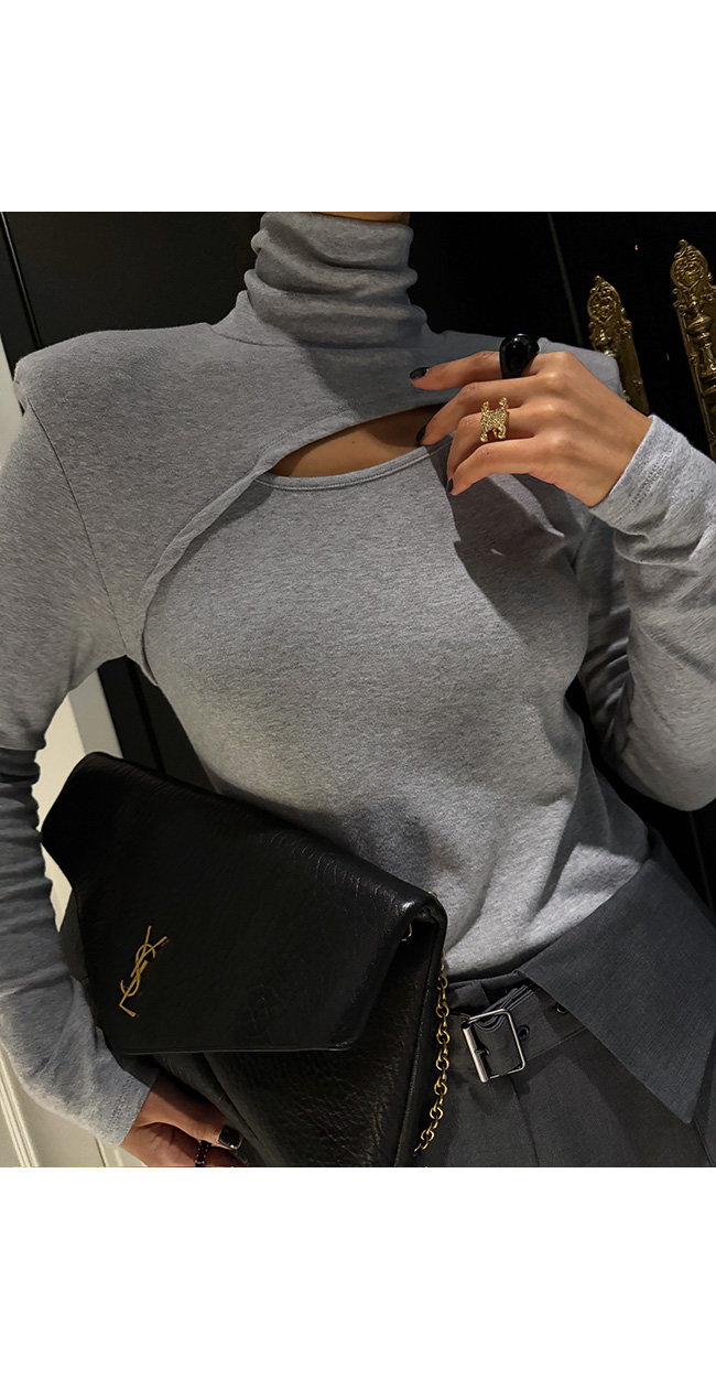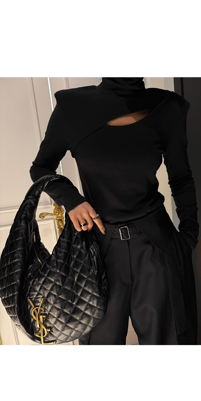 단정한 터틀넥 라인에 세련된 포인트를 더해주어