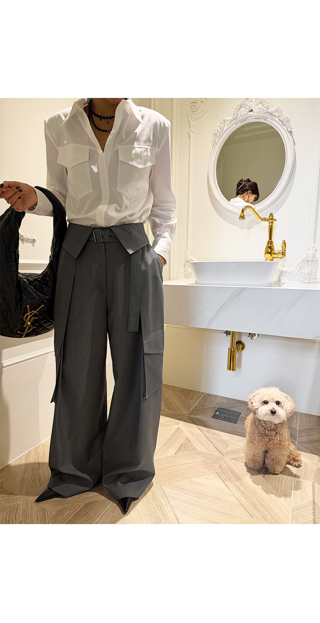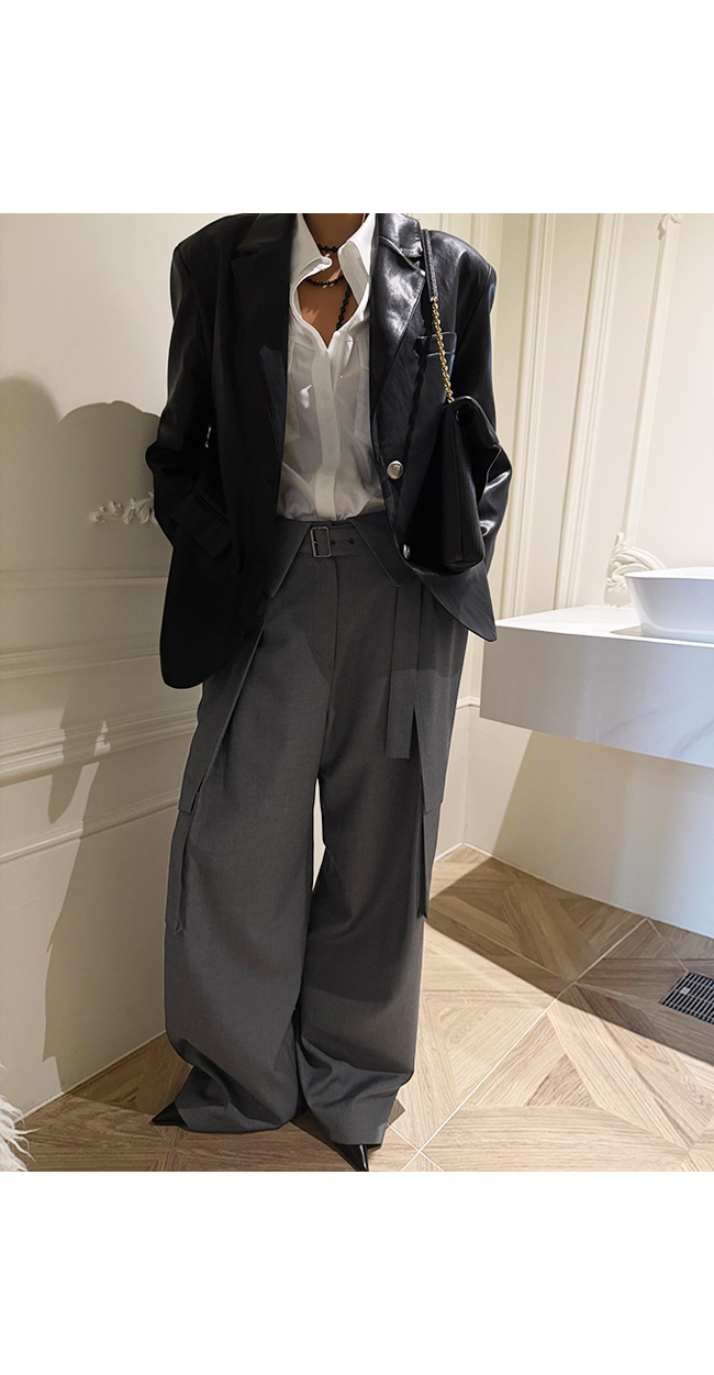 허리에는 동일 원단의 벨트가 세트로 구성되어 있어