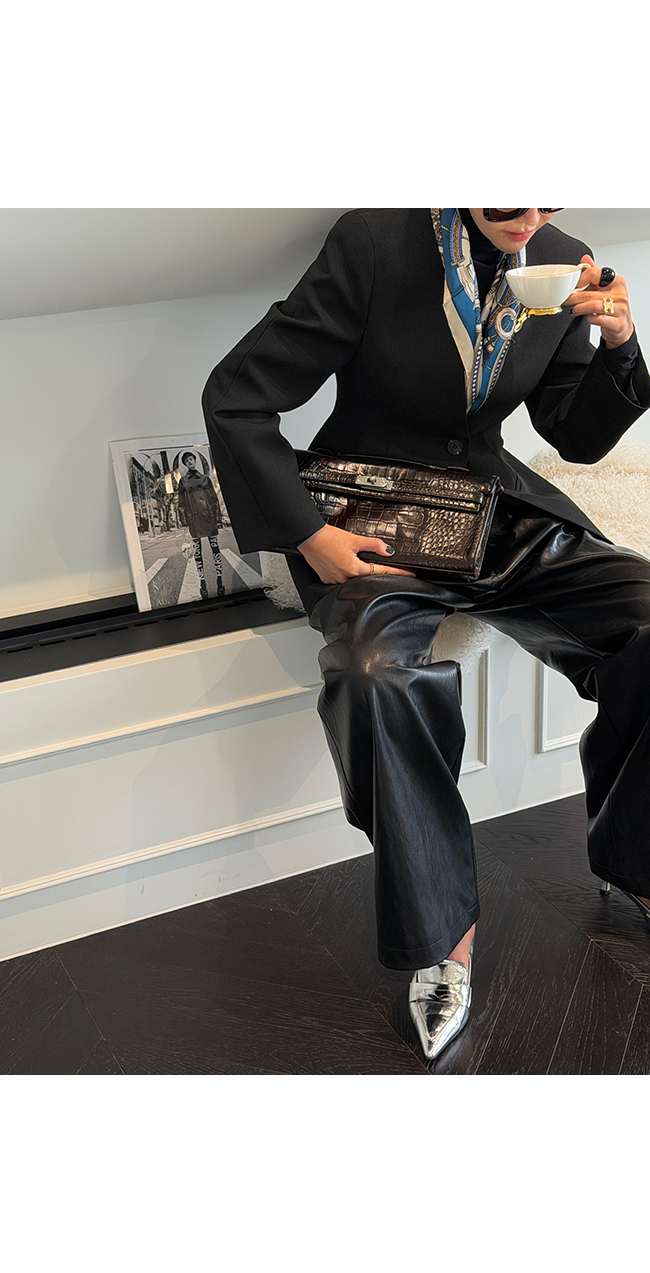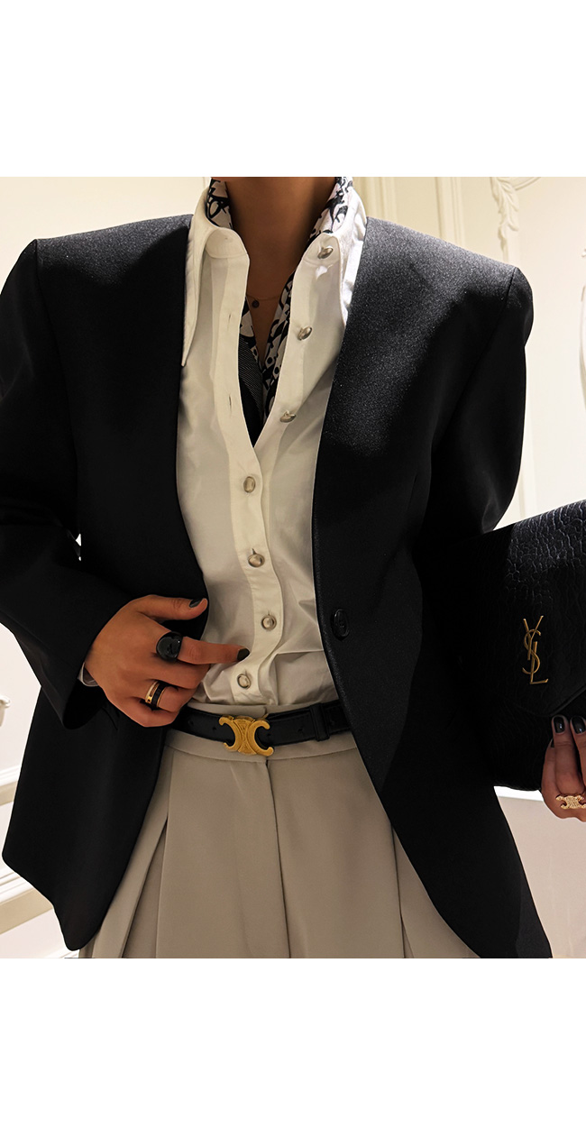 스커트나 슬랙스와는 격식 있는 포멀룩으로 활용 가능한 아이템이에요.