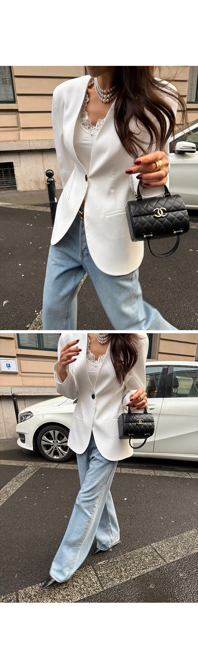 적당히 핏되는 라인감이 바디를 슬림하고 단정하게 잡아줍니다.
