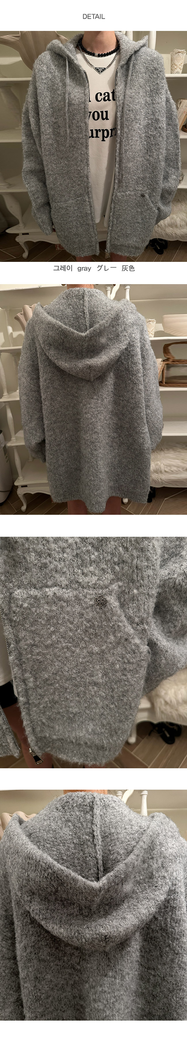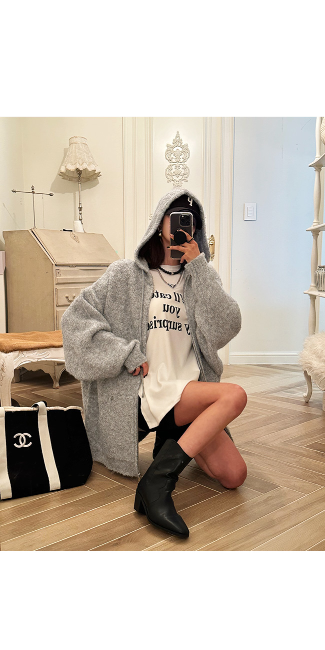 아모브 니트박시후드집업