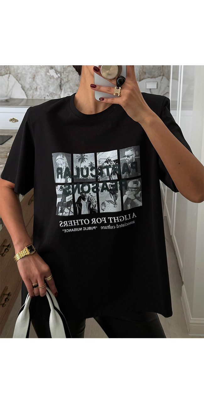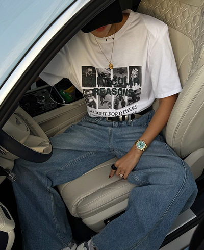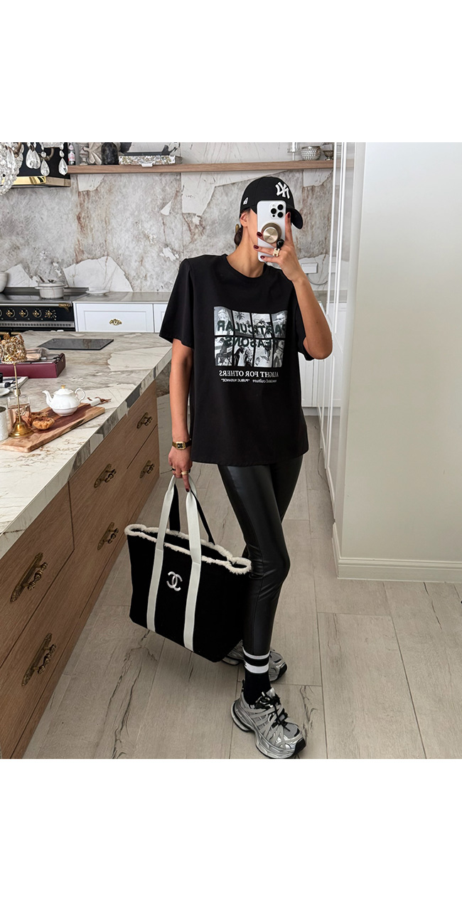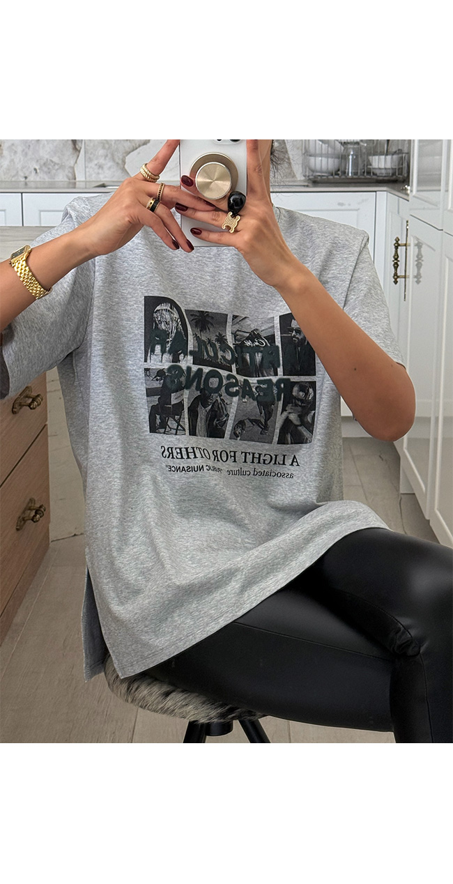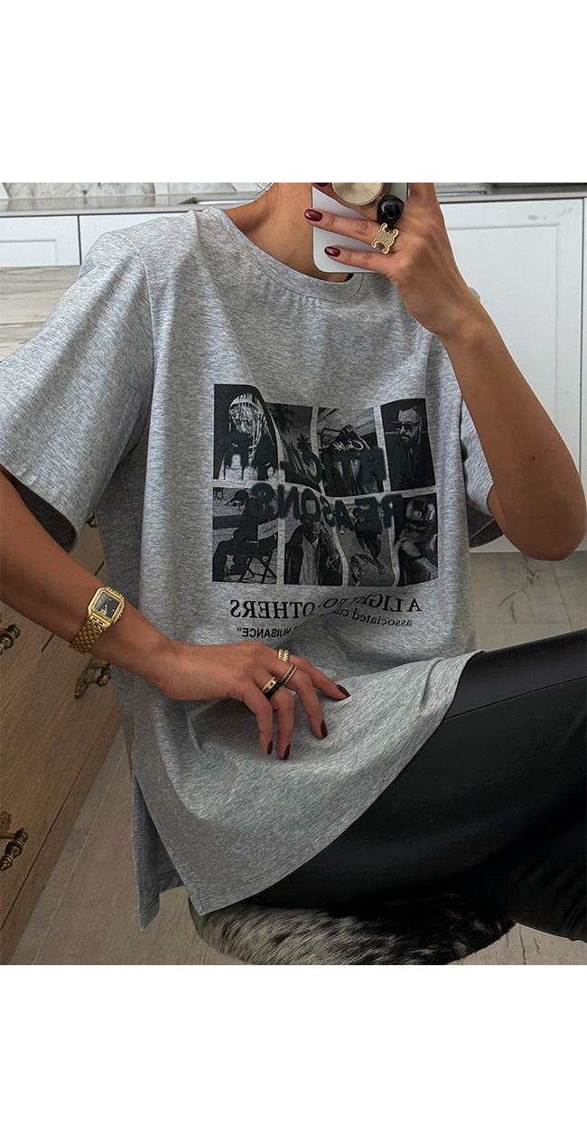 다양한 무드로 즐길 수 있는 활용도 높은 티셔츠예요.
