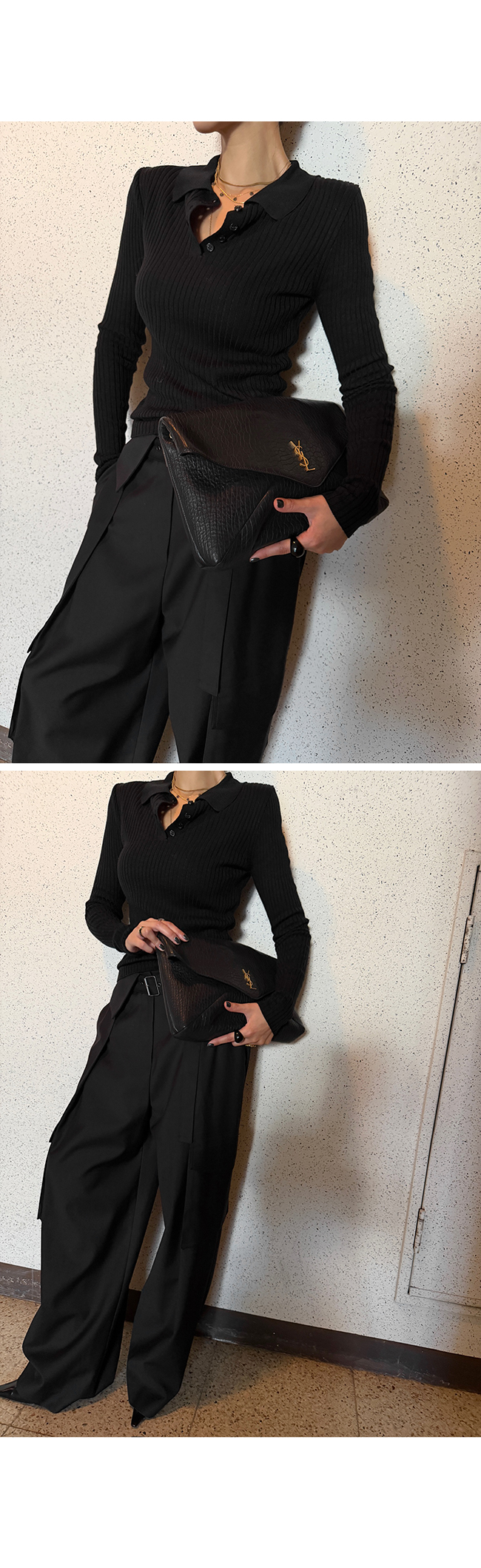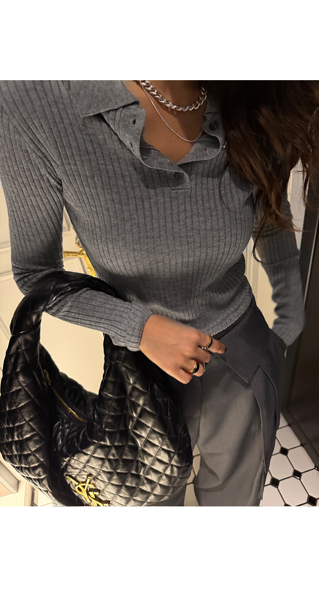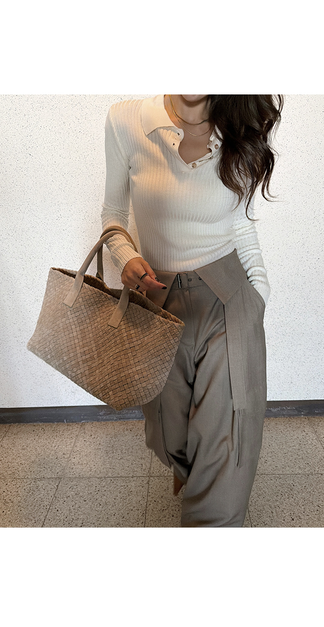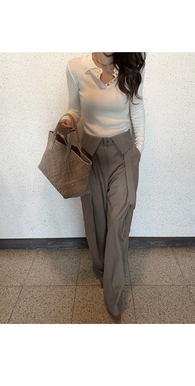 세로 골지 짜임이 슬림한 실루엣을 자연스럽게 완성해 주며,