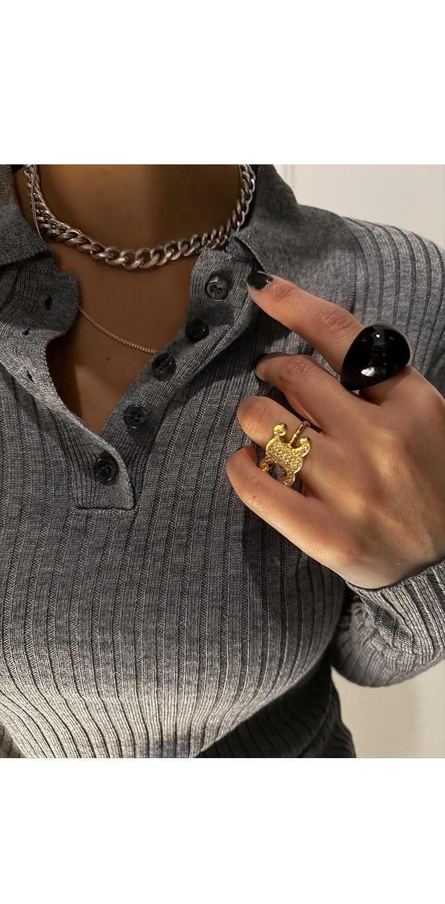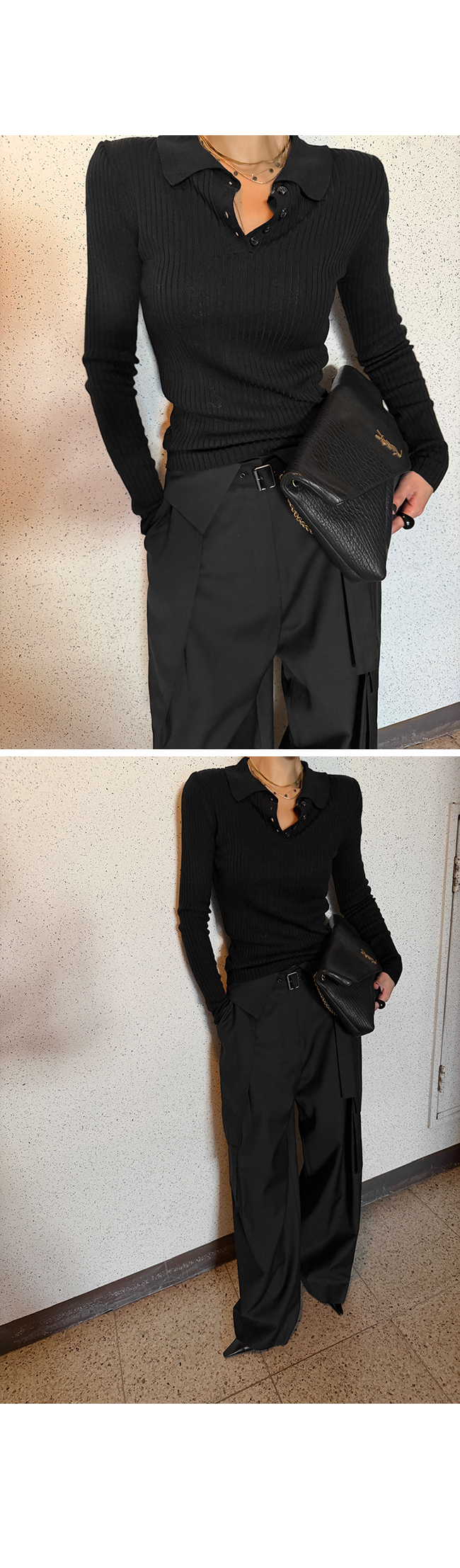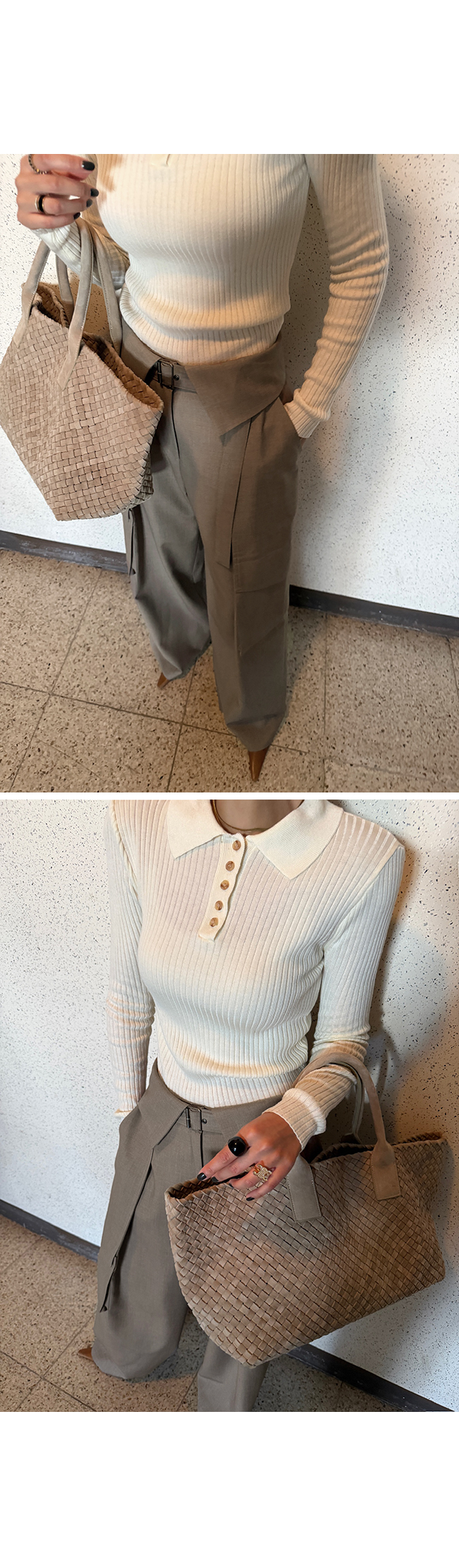세로 골지 짜임이 슬림한 실루엣을 자연스럽게 완성해 주며,