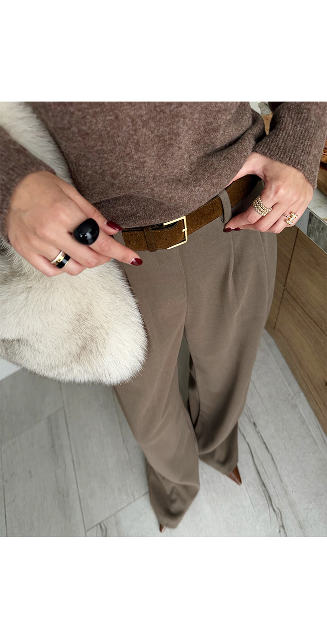 흐르는 듯한 여유 있는 실루엣을 만들어주는 팬츠예요.