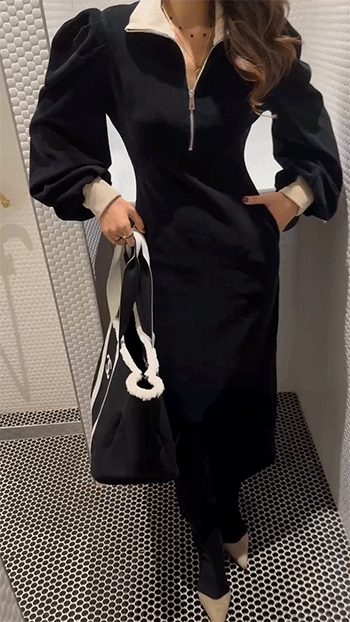 소매단과 카라 배색 포인트로 한층 더 세련된 느낌을 더했습니다.