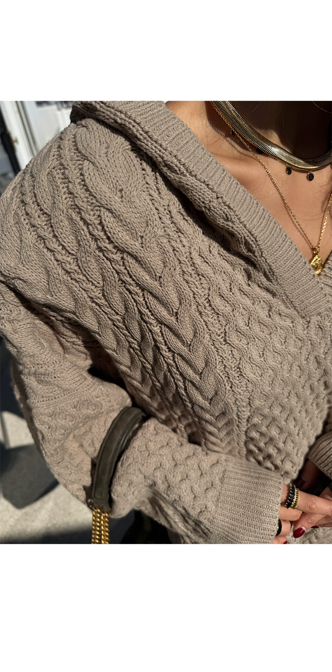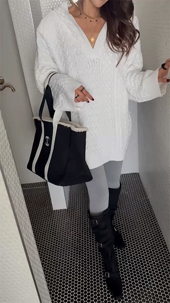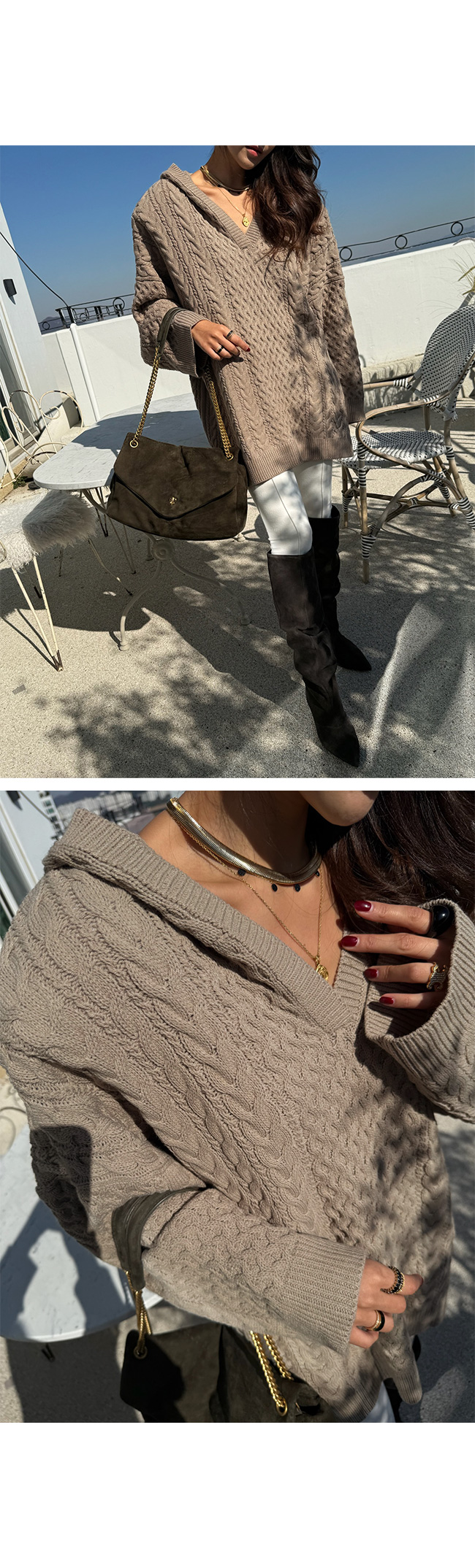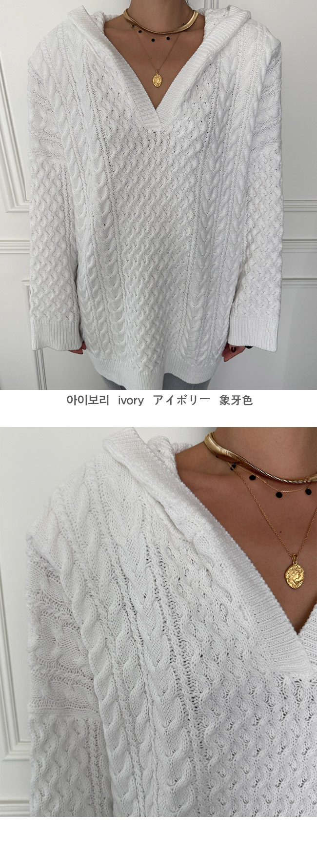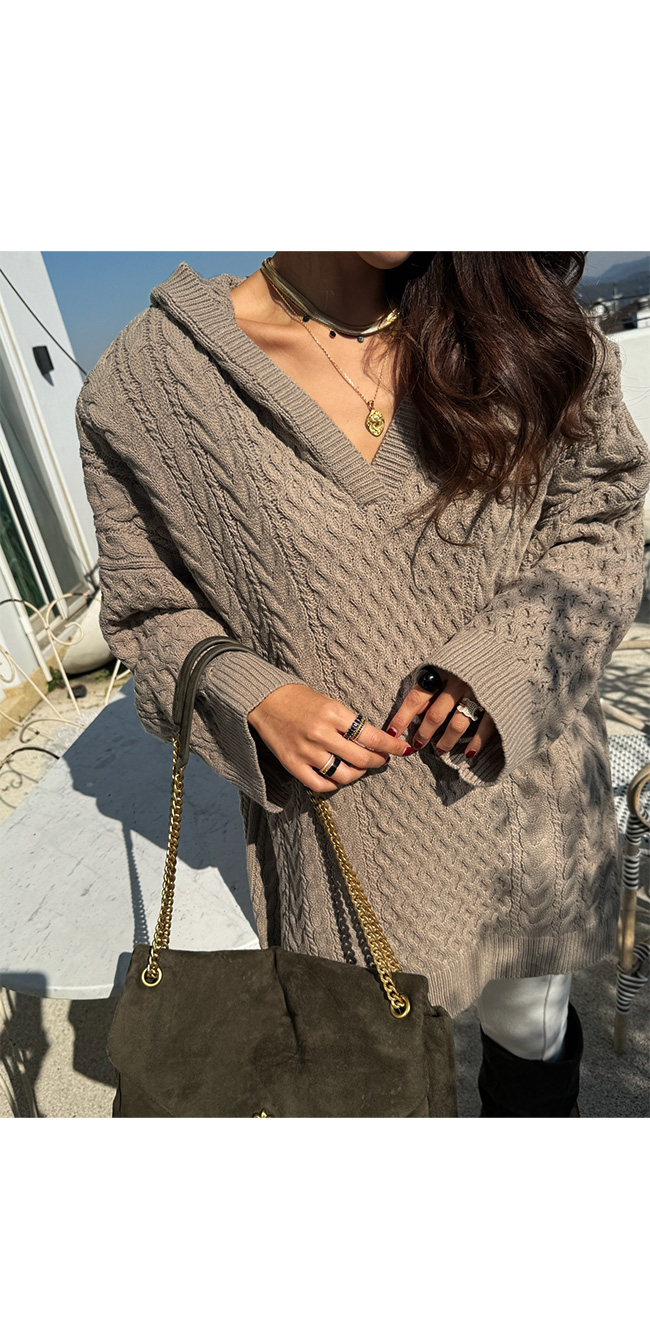 브이넥 롱 후드 니트를 소개해드릴게요.