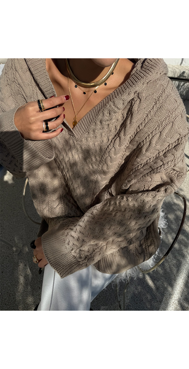 굵은 꽈배기 짜임으로 포근한 무드가 느껴지고,
