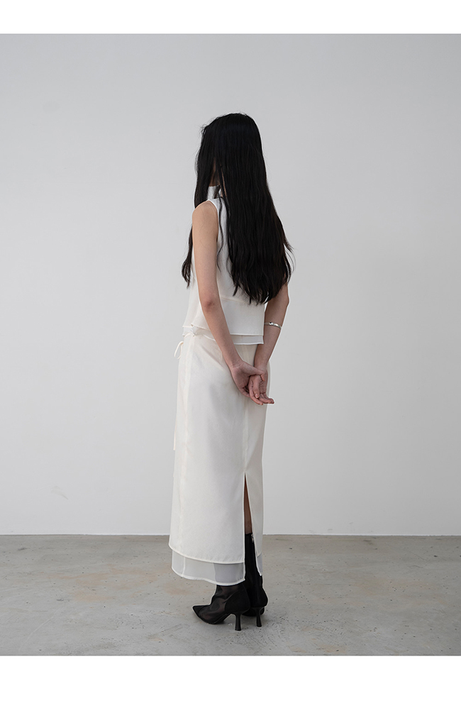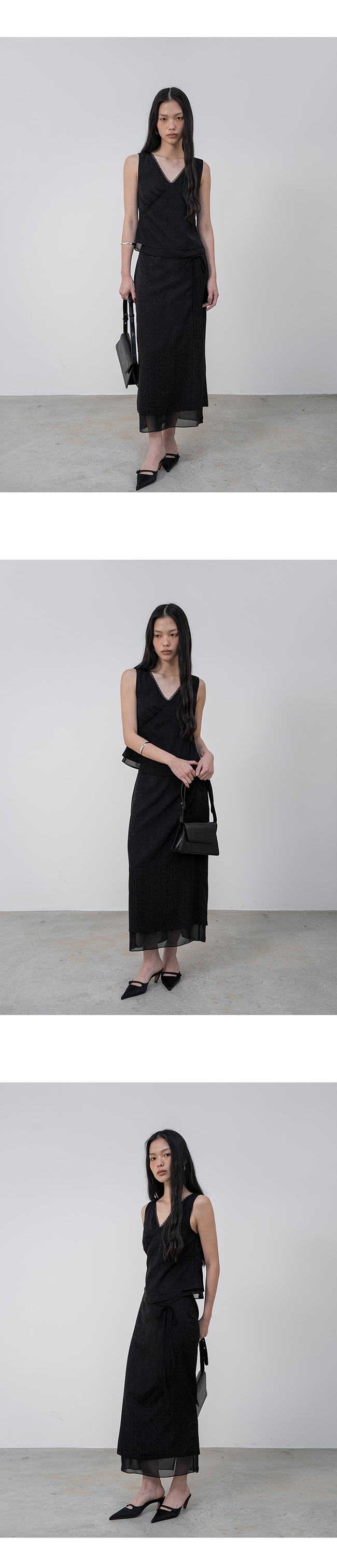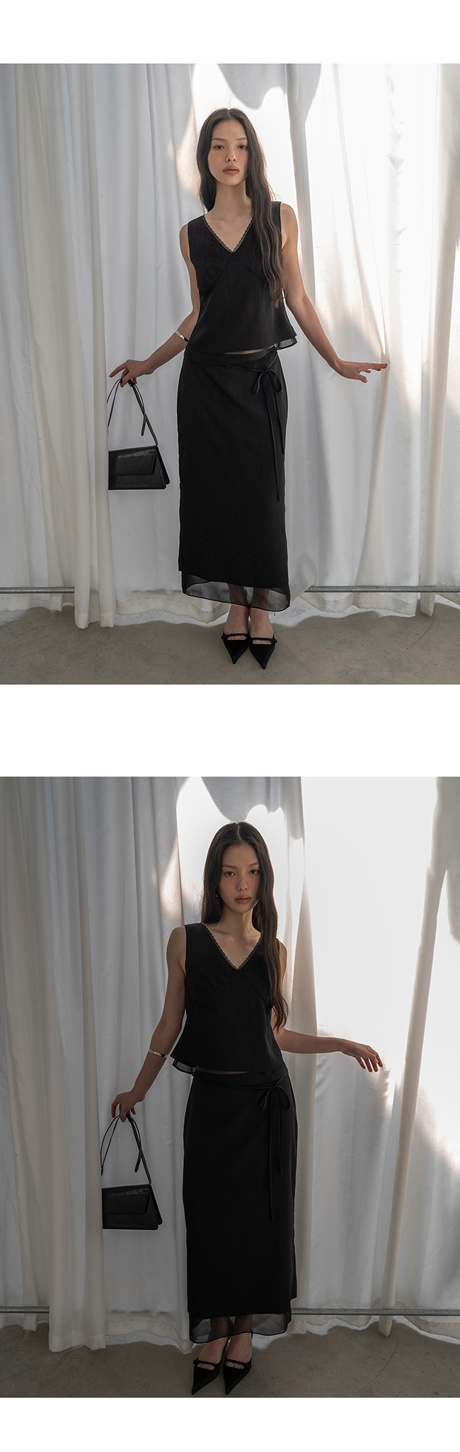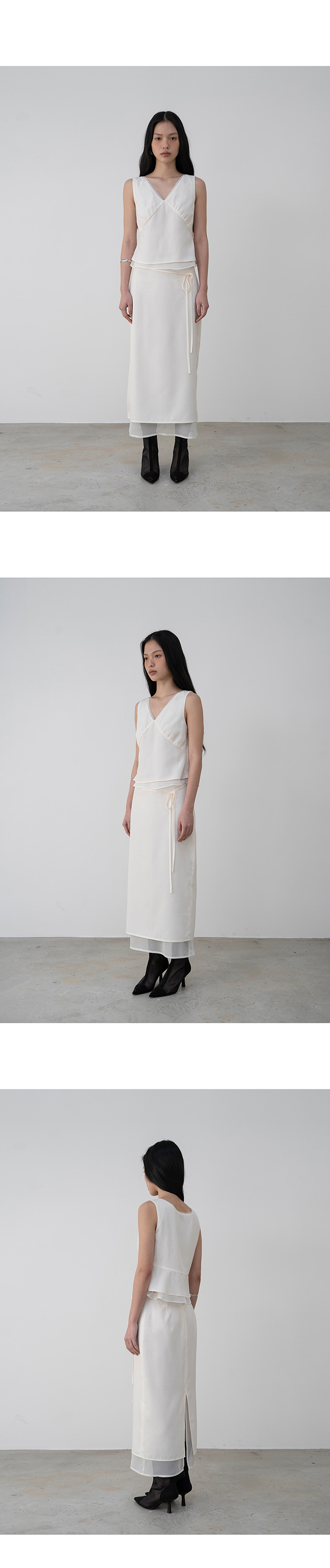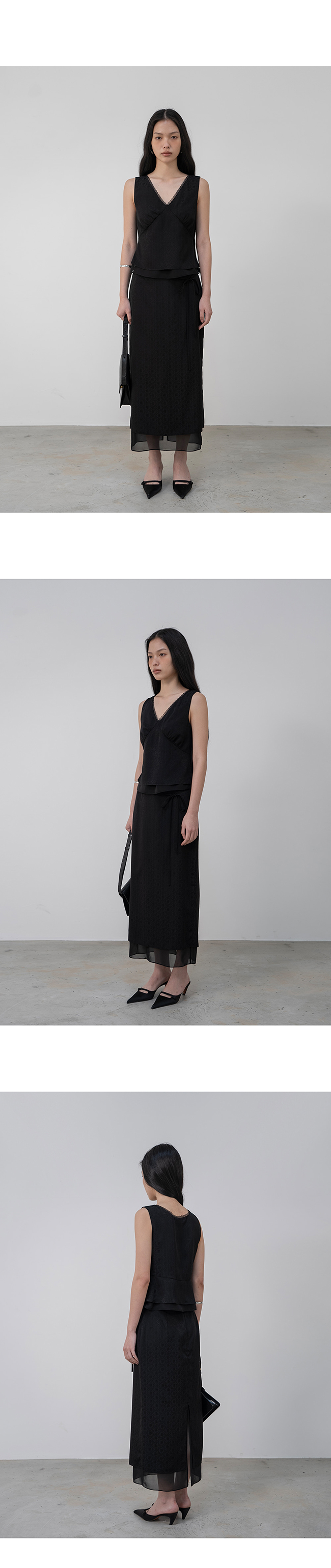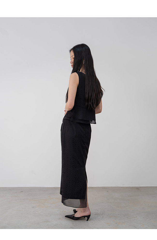 레이어드 레이스 슬리브리스 탑과 함께 착용하여