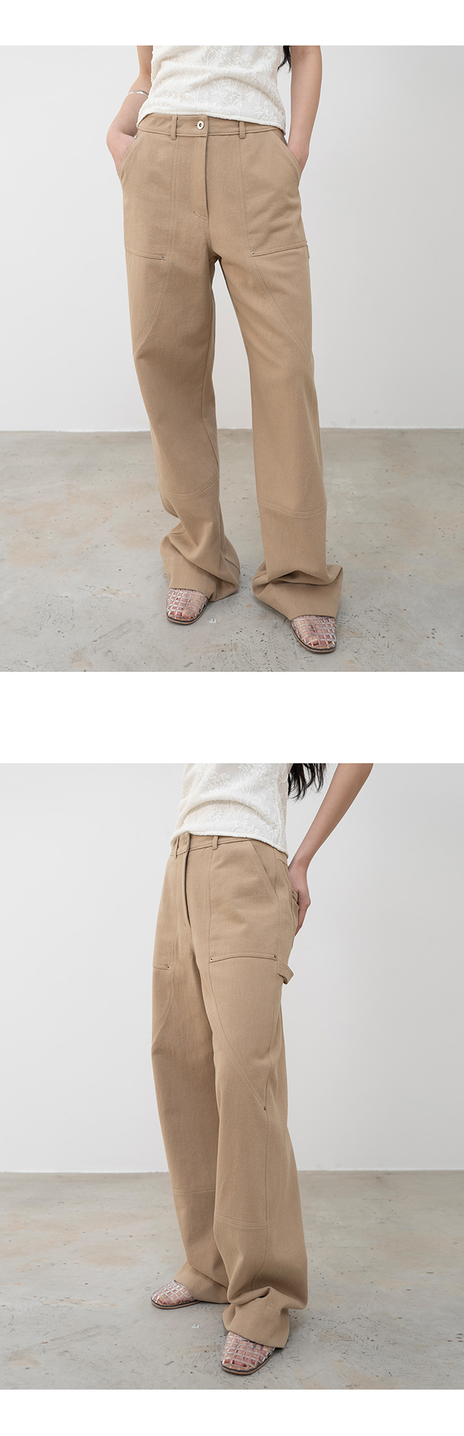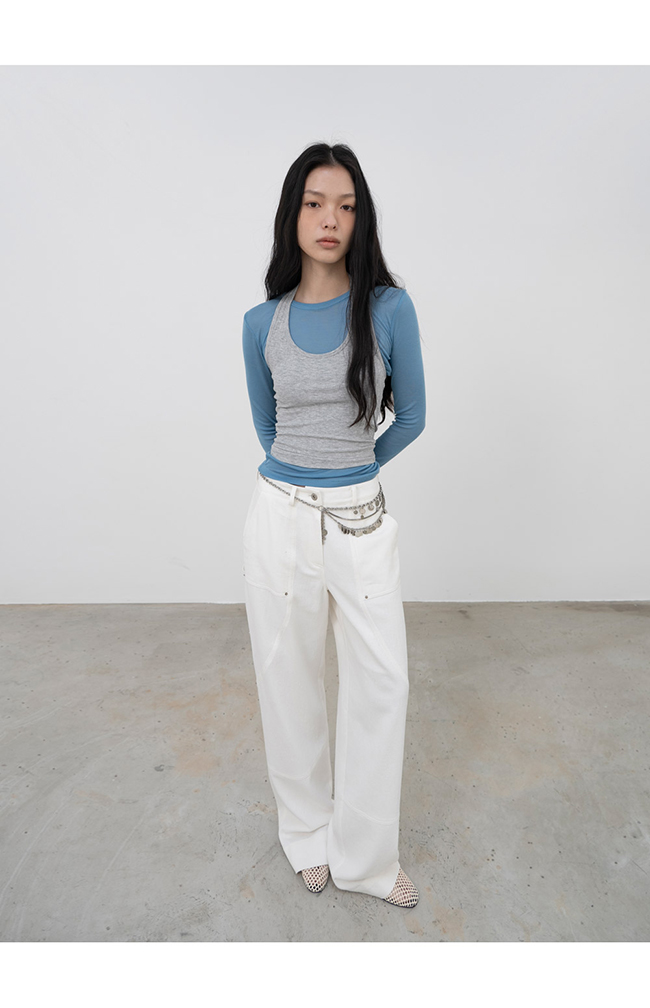 여유로운 스트레이트 핏과 세미 로우 라이즈 형태로 트렌디한 실루엣을 연출합니다.