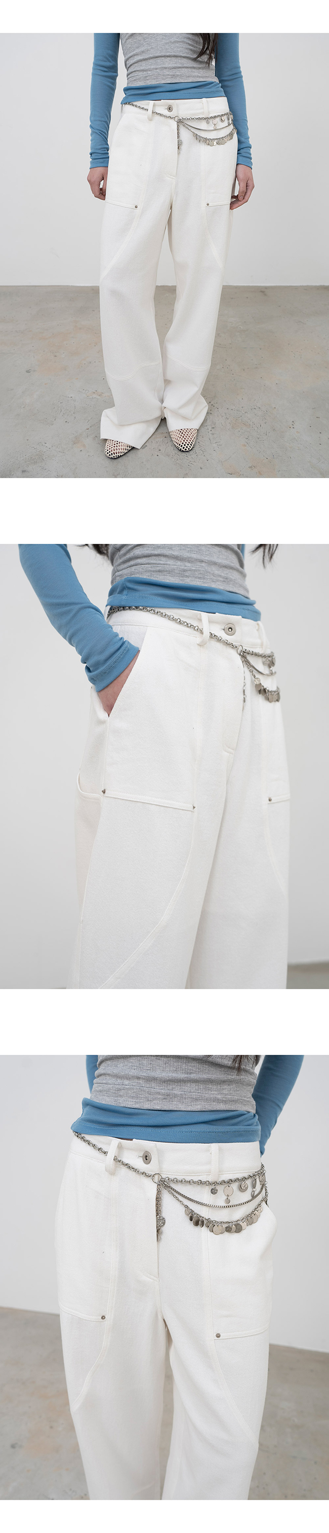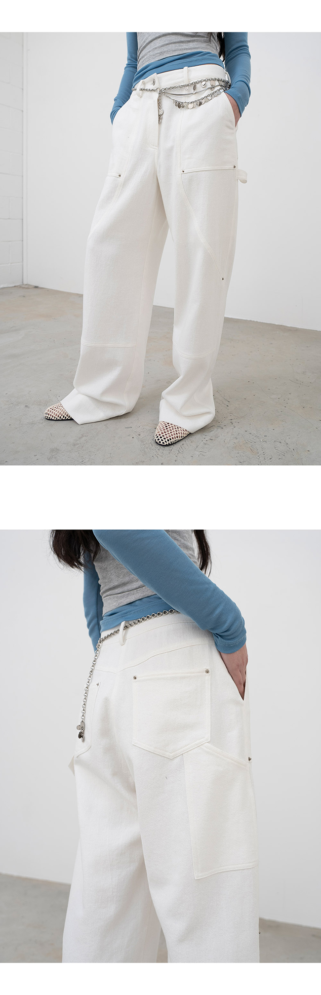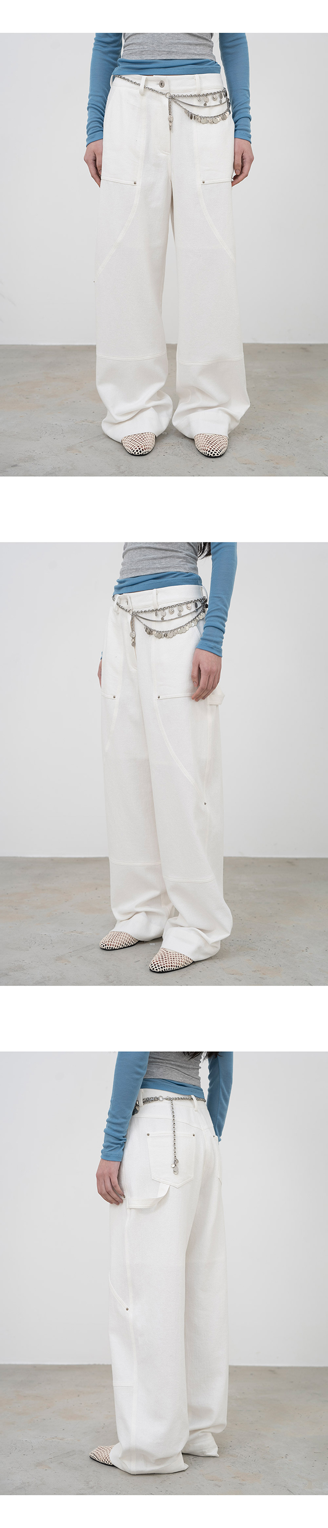 다양한 디테일로 포인트를 준 카펜터 팬츠입니다.