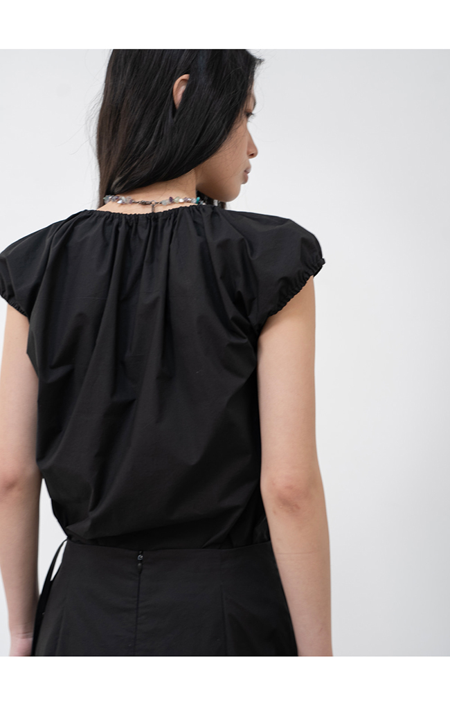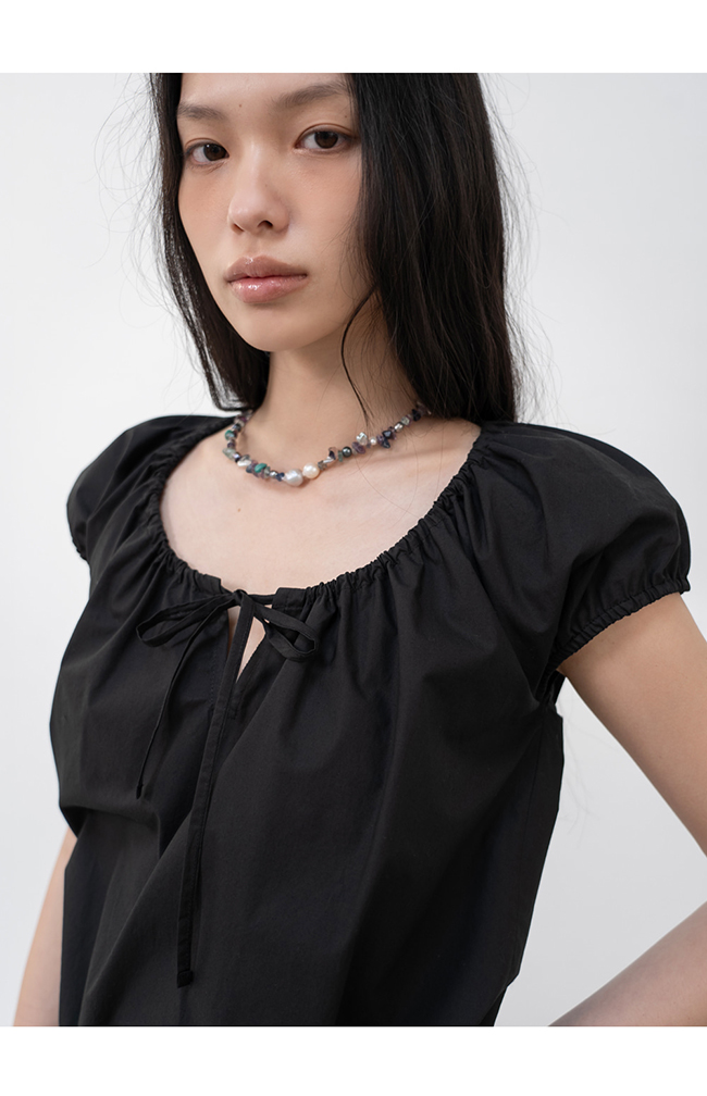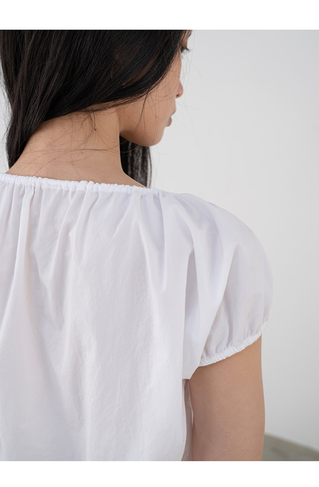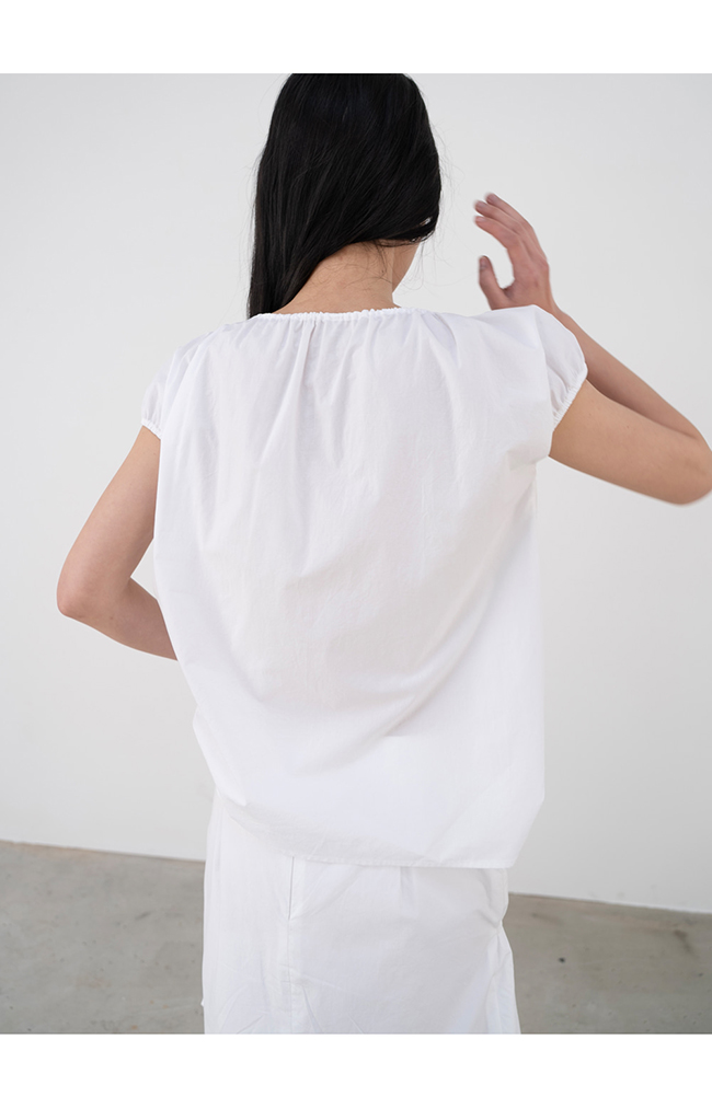 로맨틱하고 네추럴한 무드를 담은 코튼 셔링 블라우스입니다.