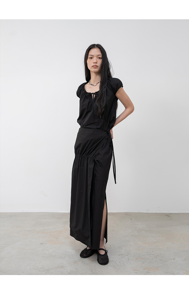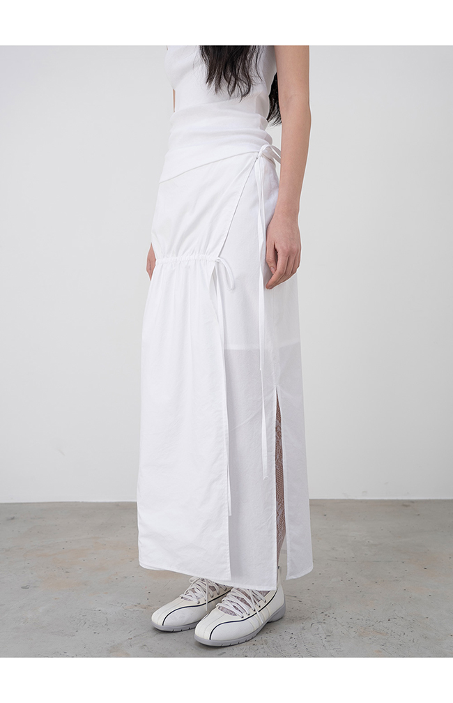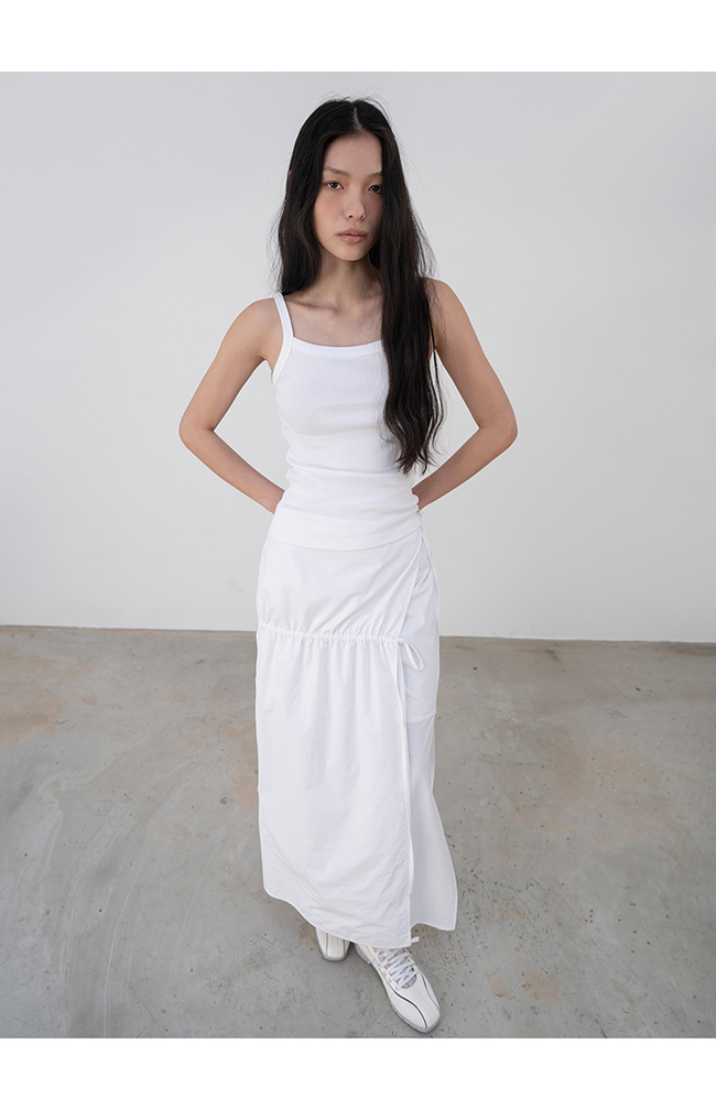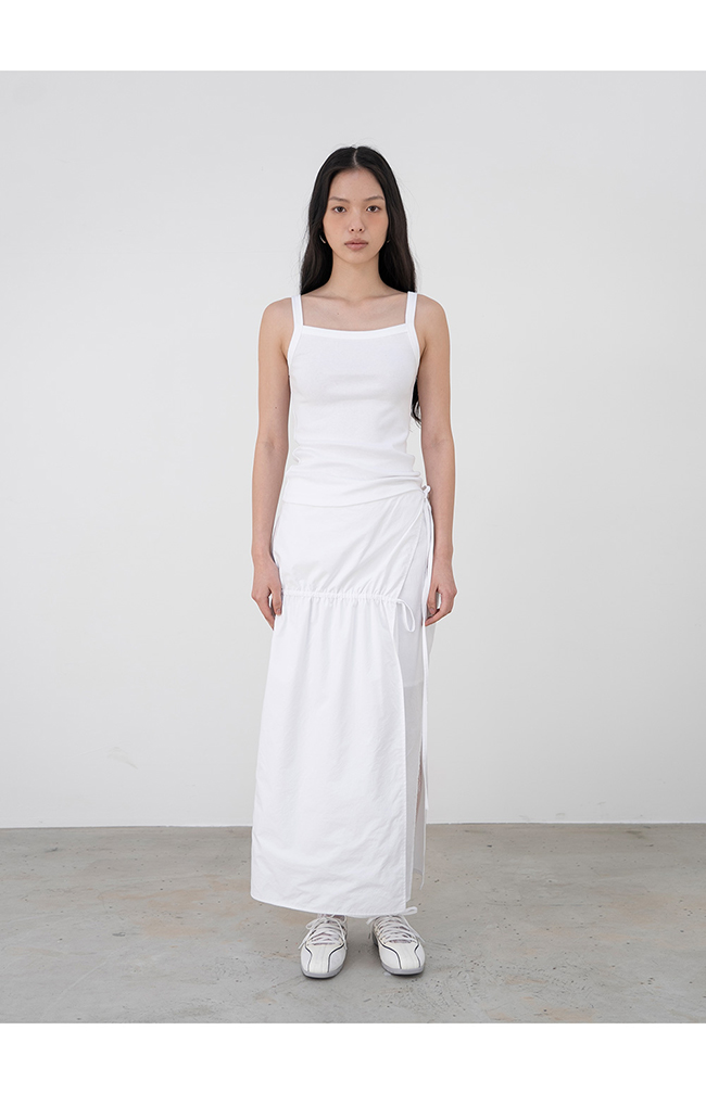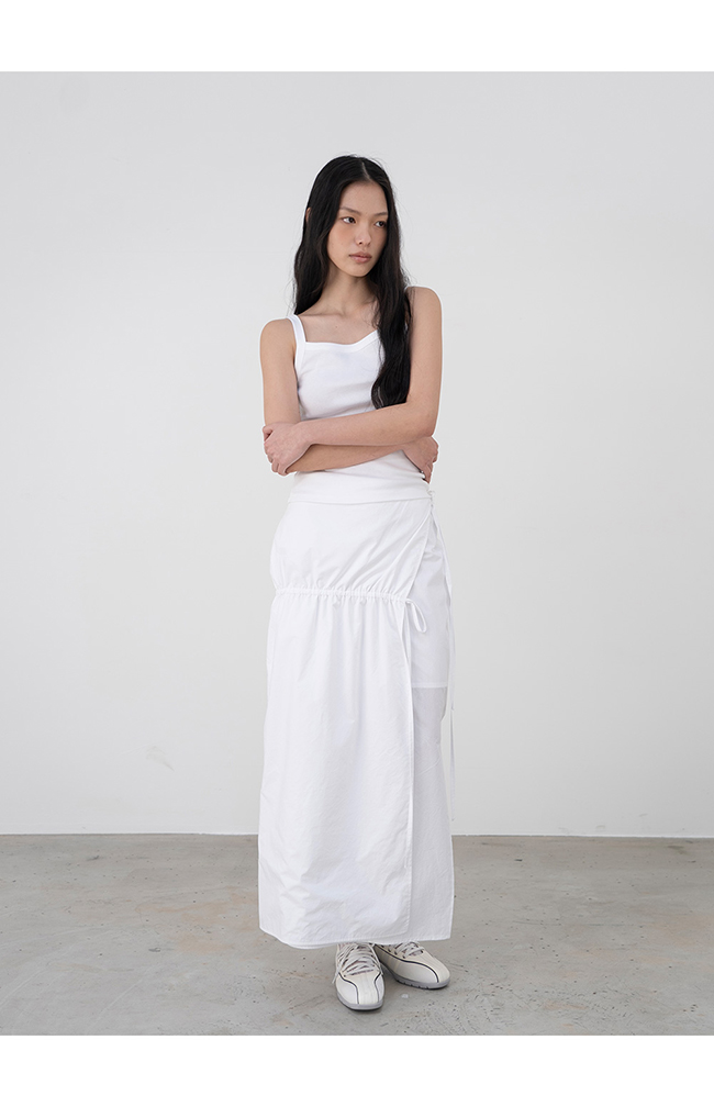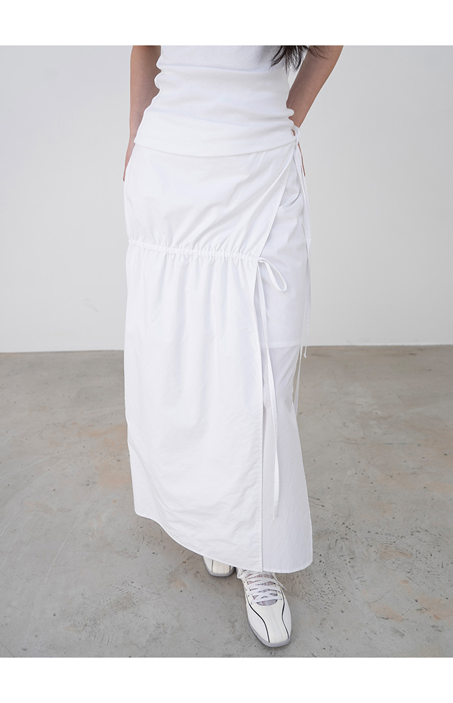 롱한 기장감에 스트링으로 셔링을 자유롭게 조절하여 원하는 아웃핏으로