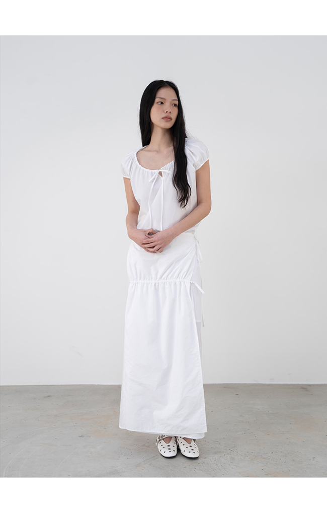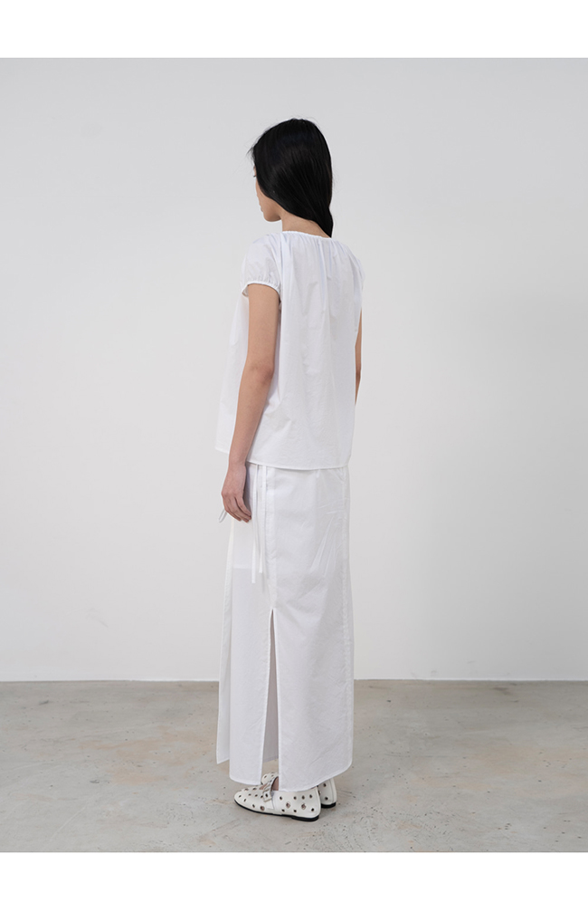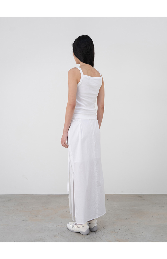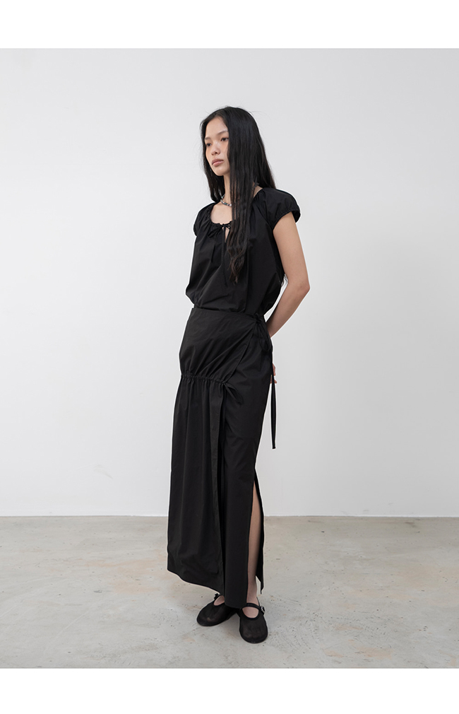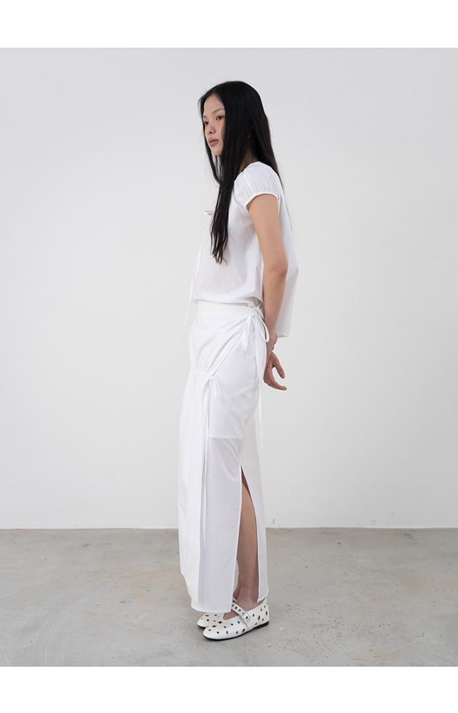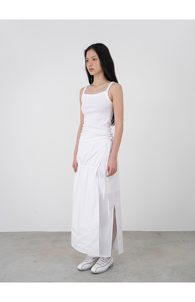 롱한 기장감에 스트링으로 셔링을 자유롭게 조절하여 원하는 아웃핏으로