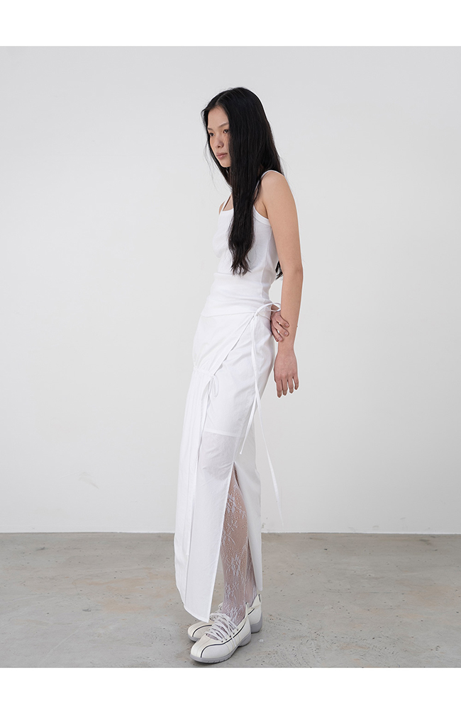 로맨틱하고 네추럴한 무드를 담은 코튼 랩스커트입니다.