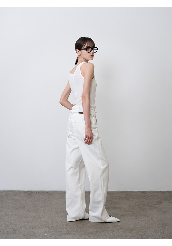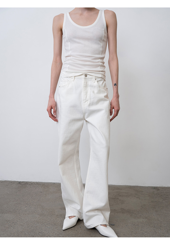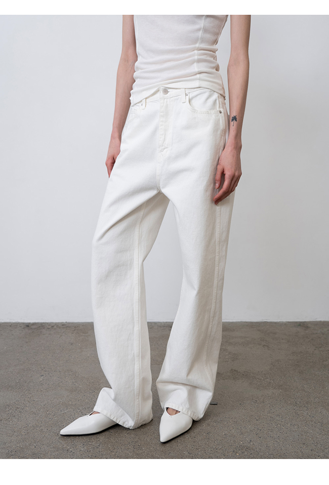 -스트레이트 핏 화이트 데님 팬츠