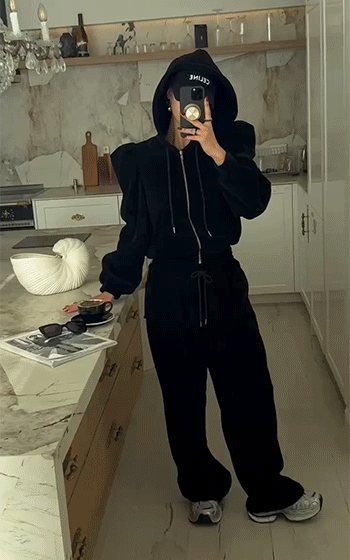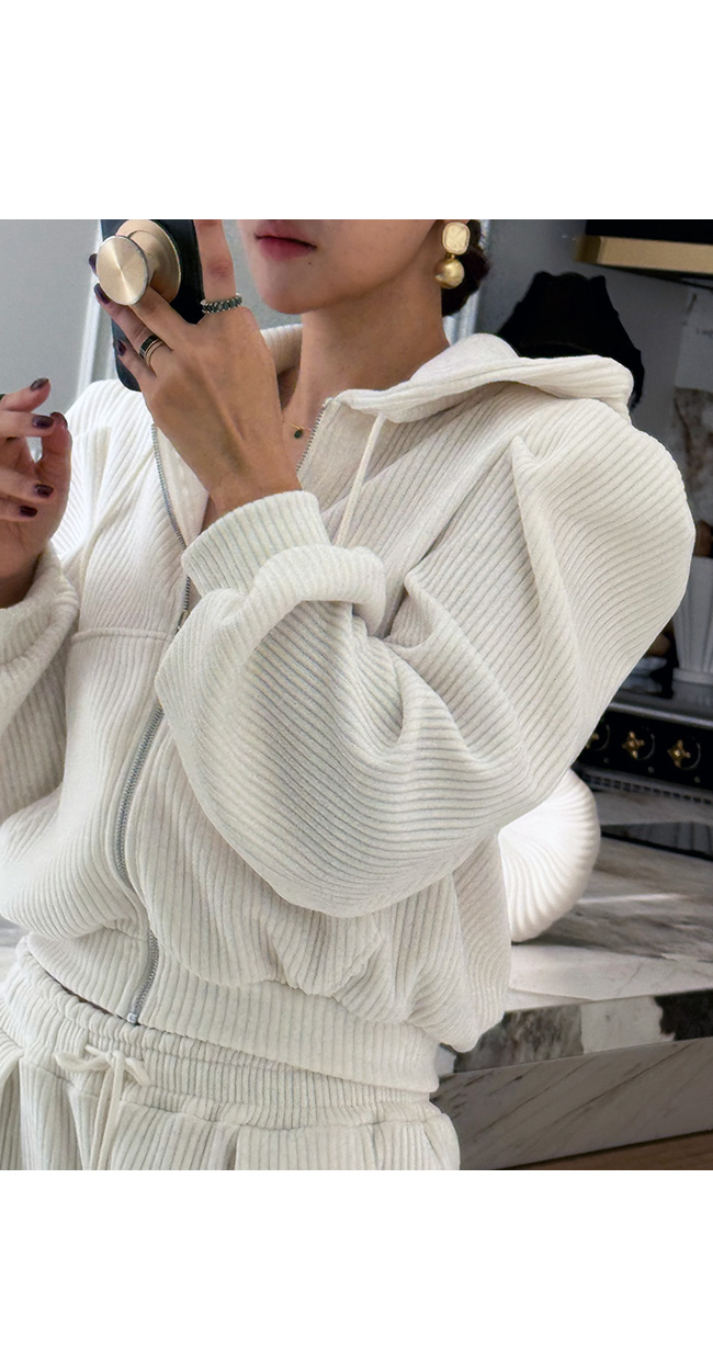 감각적인 퍼프 후드 집업입니다.