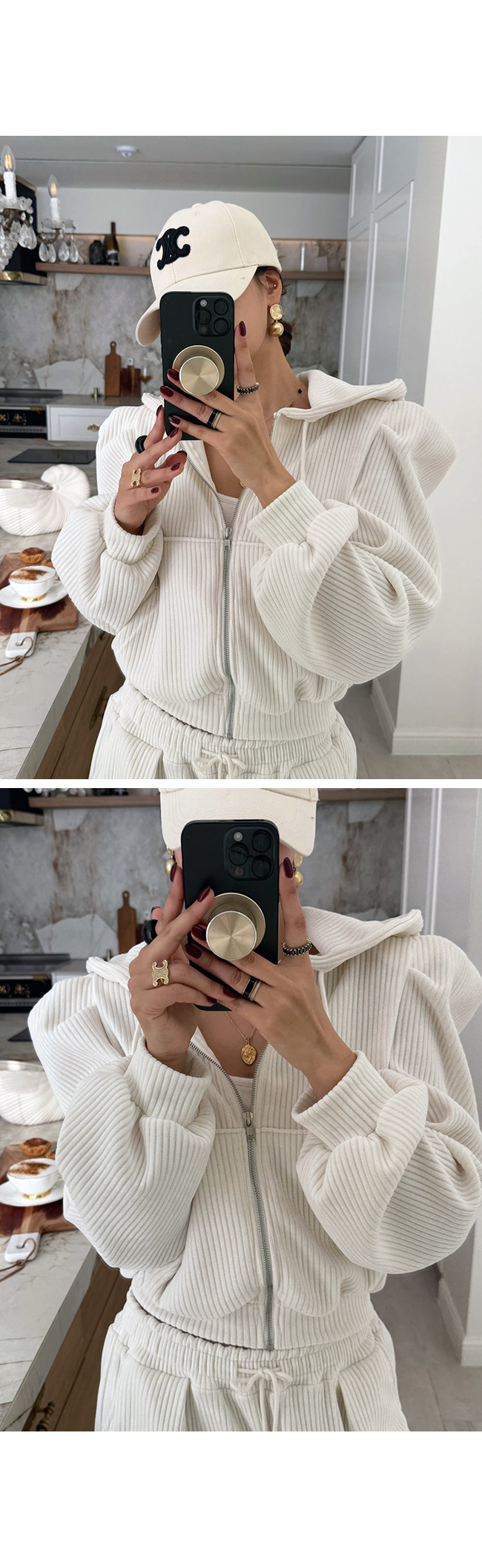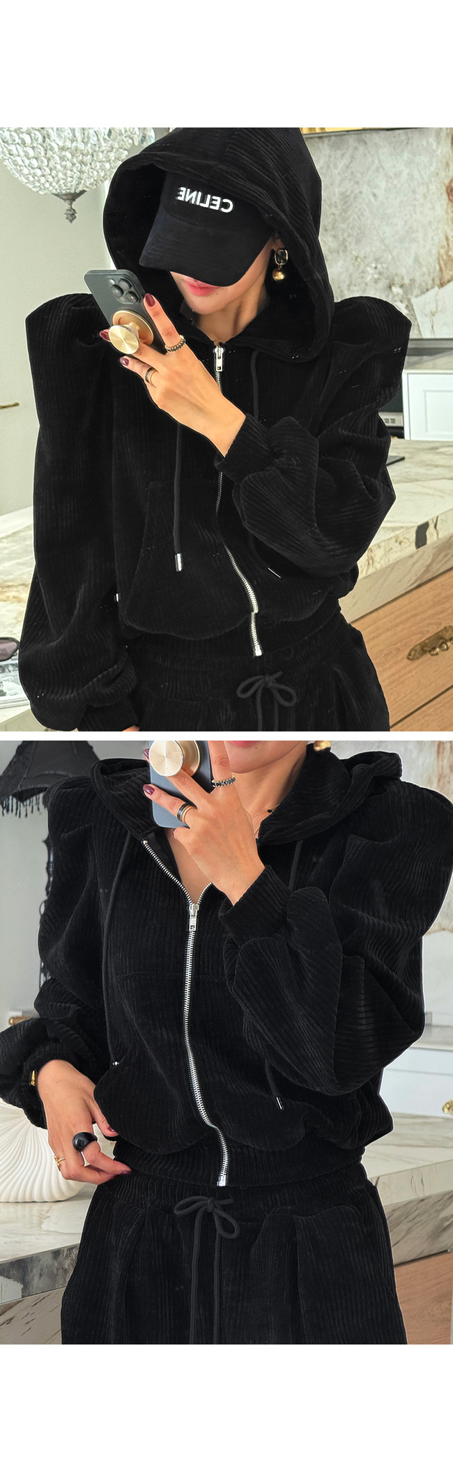골덴 퍼프 후드 집업을 소개해드릴게요.