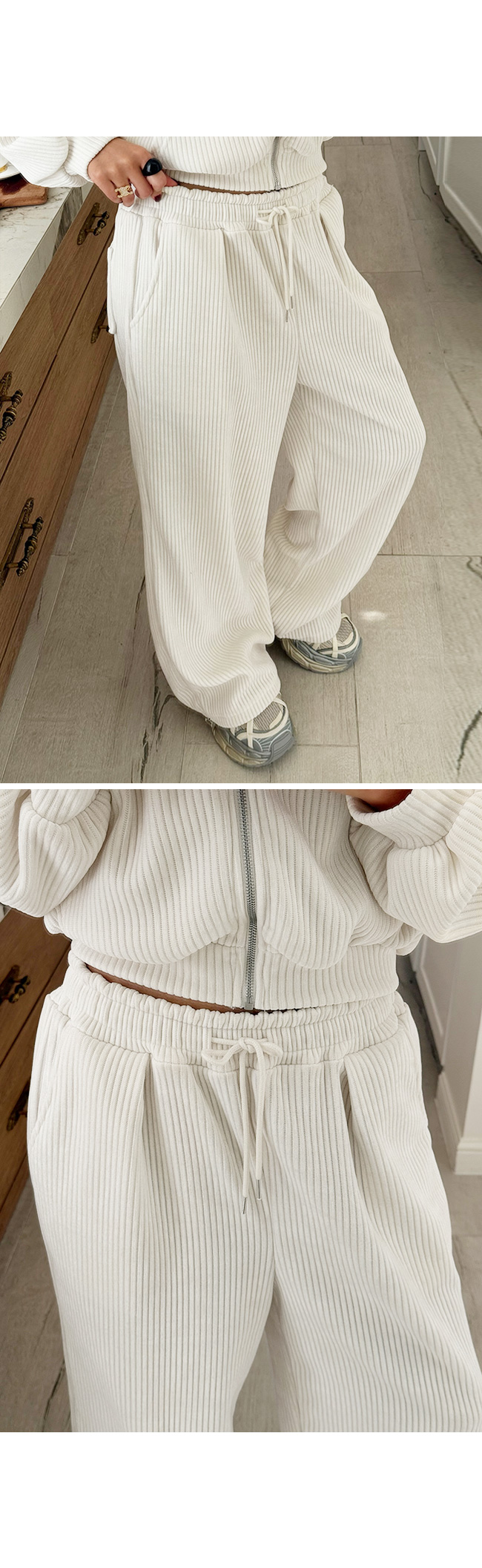 - 안쪽면이 쮸리나 기모가 가공이된 소재감들은 가공 과정에 의해 약간의 먼지가 발생할 수 있으니, 세탁후 입어주세요.