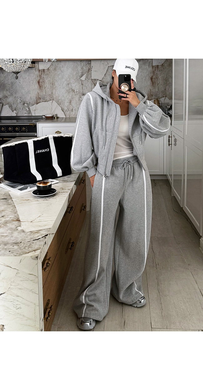 프론트 라인에 세로로 내려오는 화이트 배색 테이프가