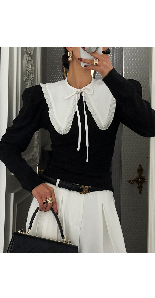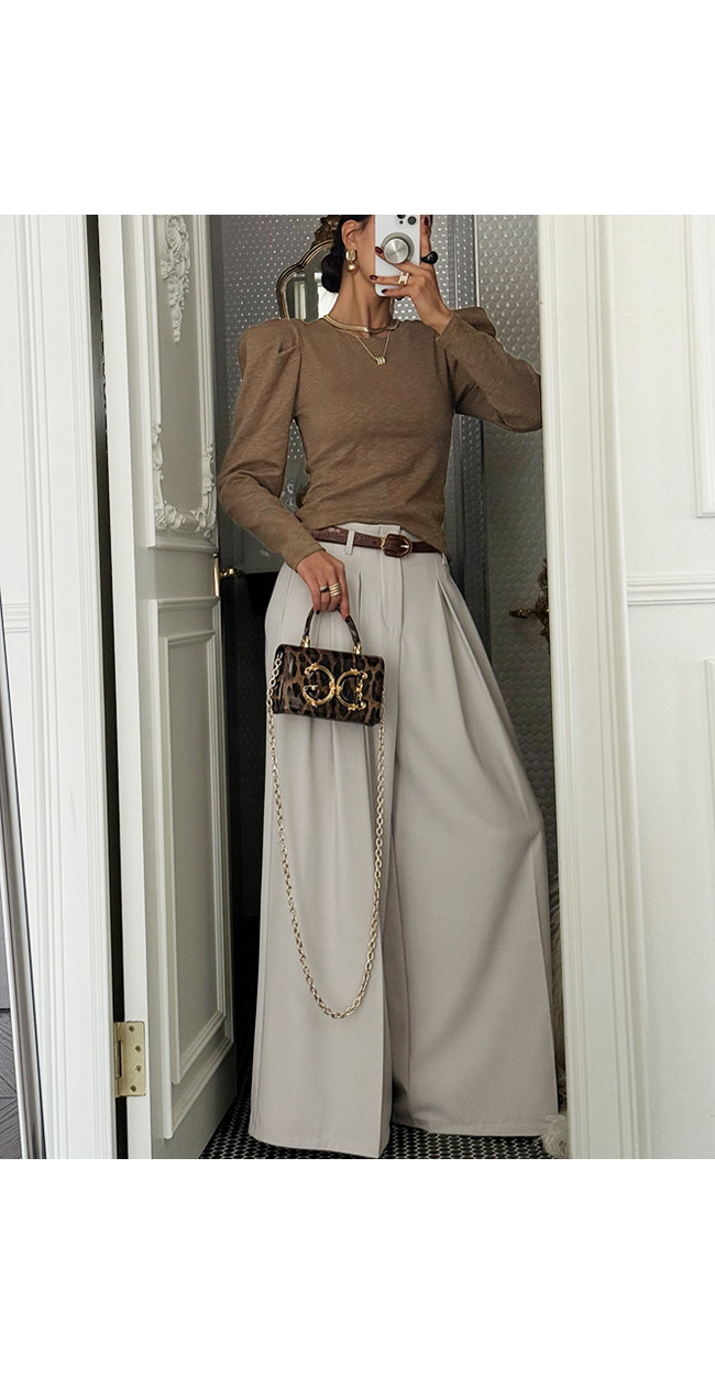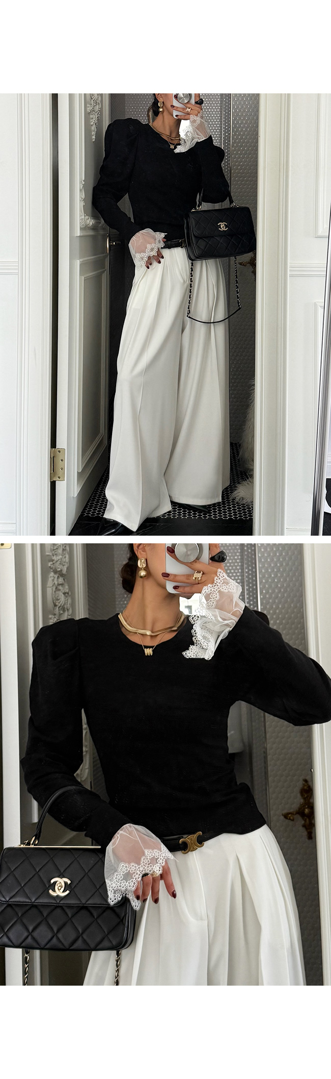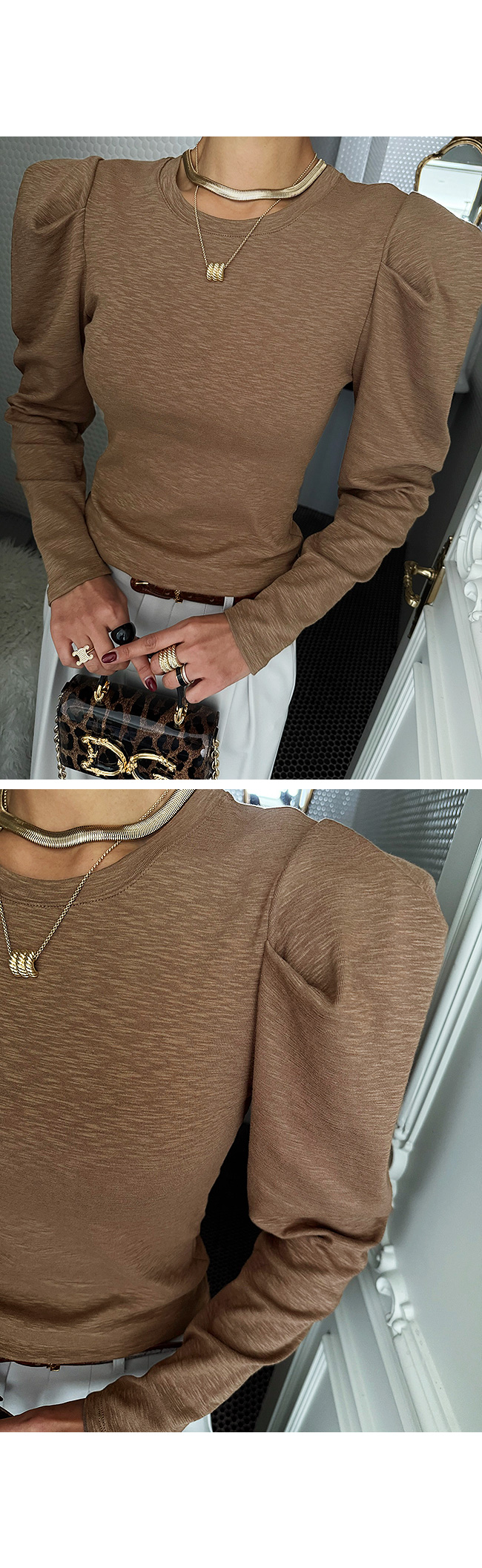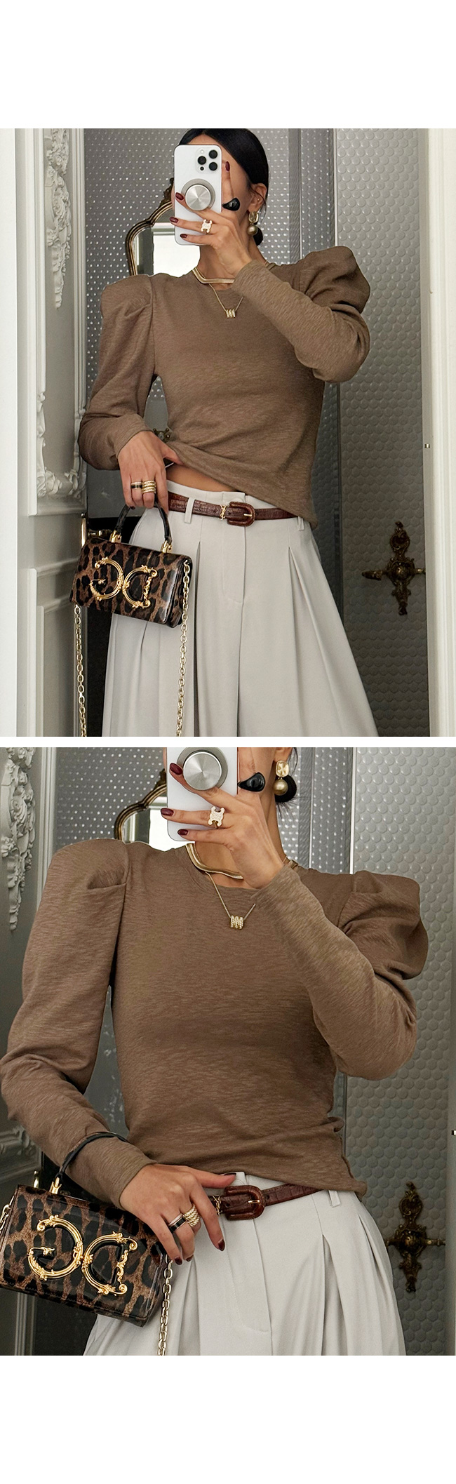 볼륨감 있는 퍼프 숄더 디테일을 더해