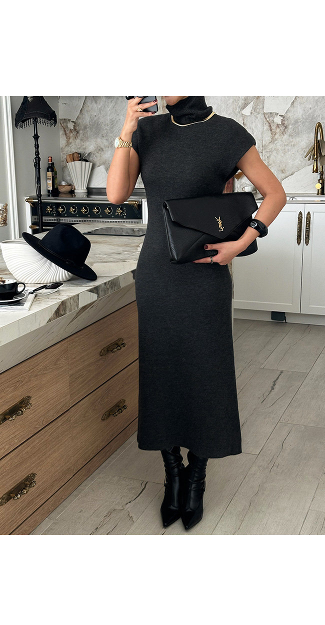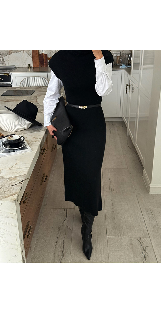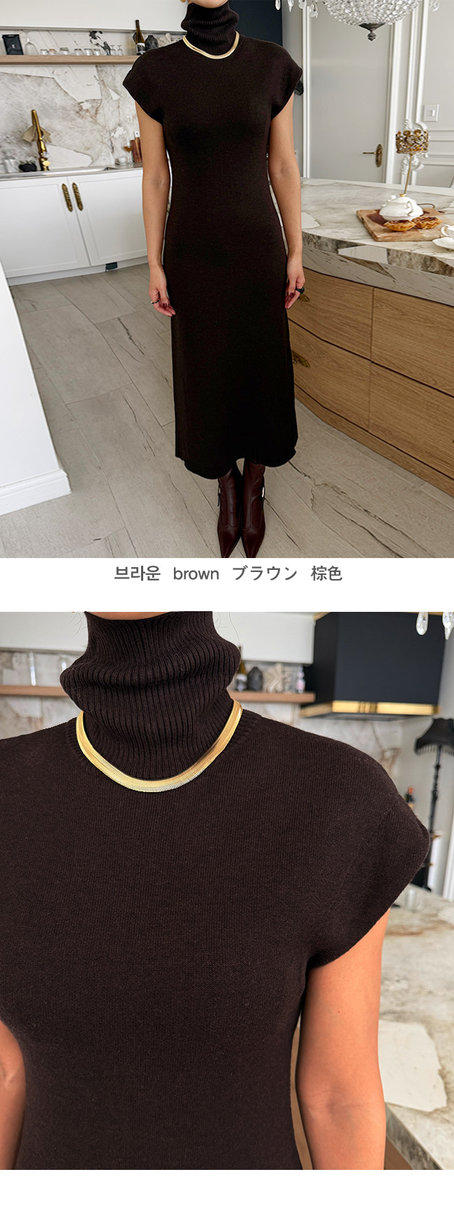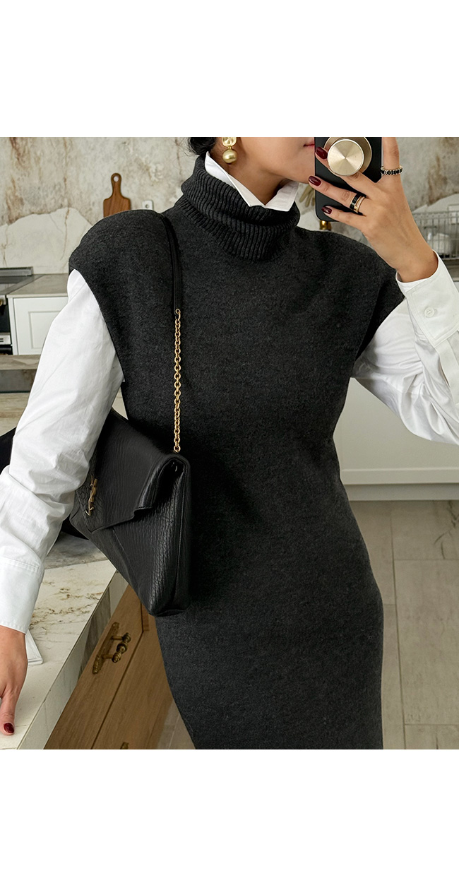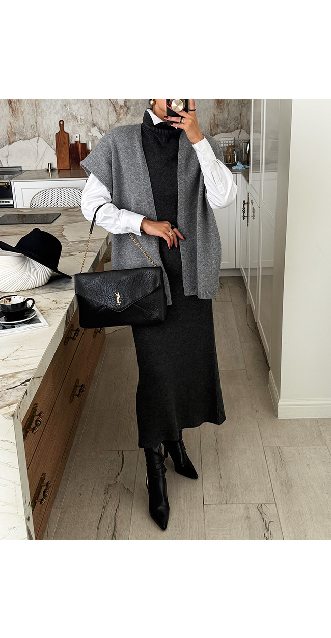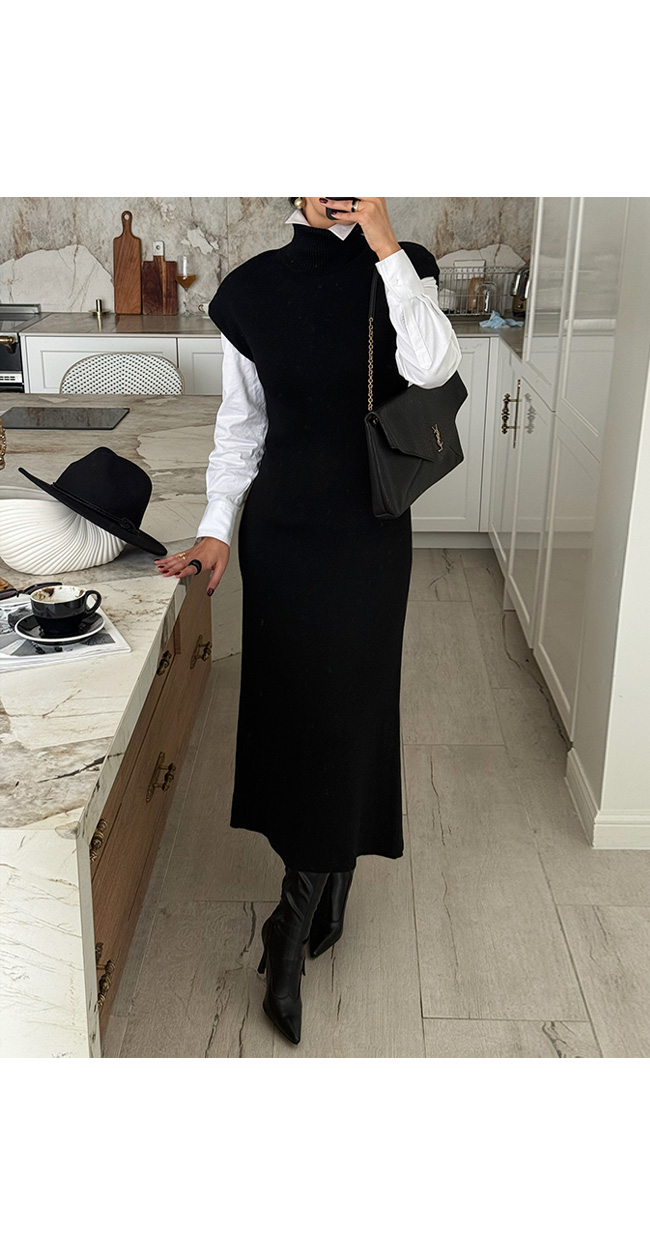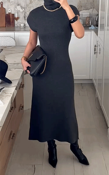하이넥 캡소매 니트 롱 원피스를 소개해드릴게요.
