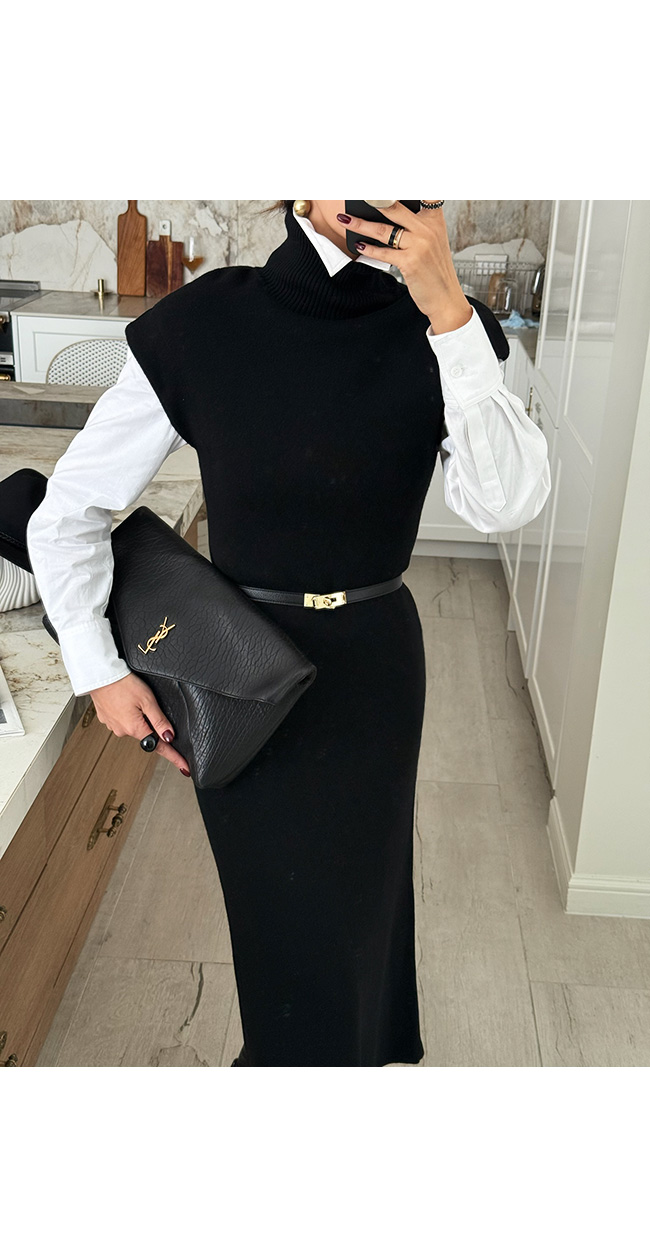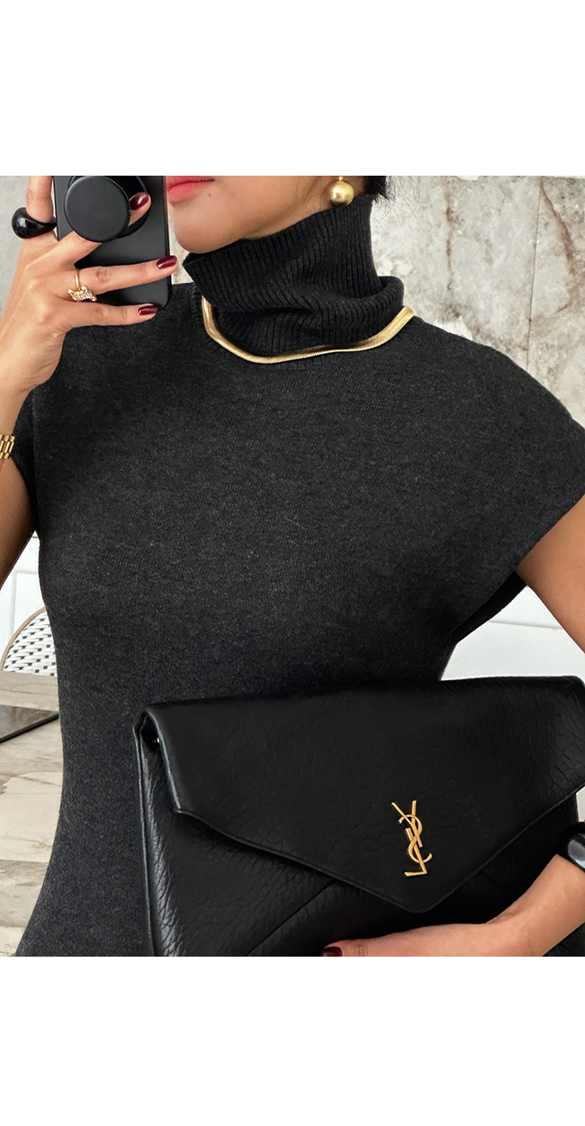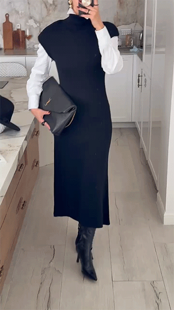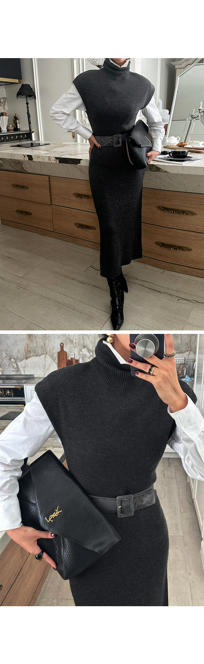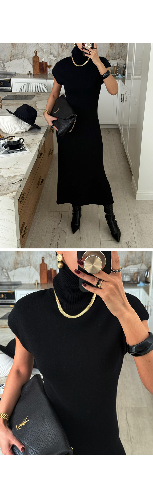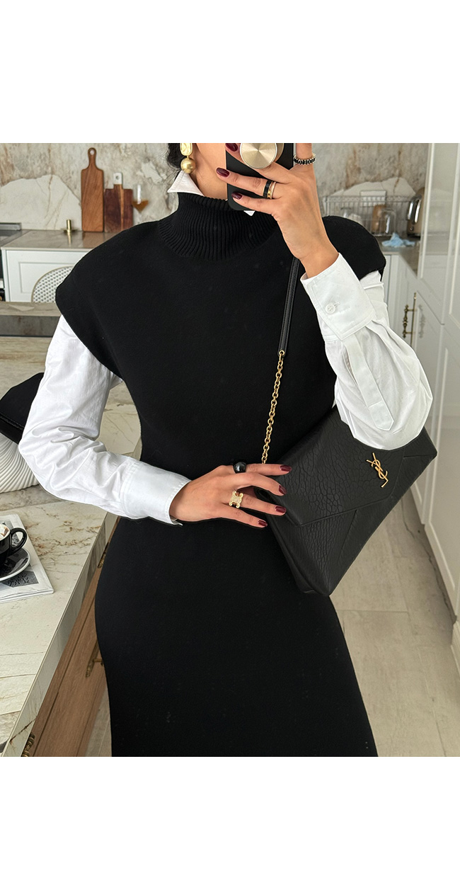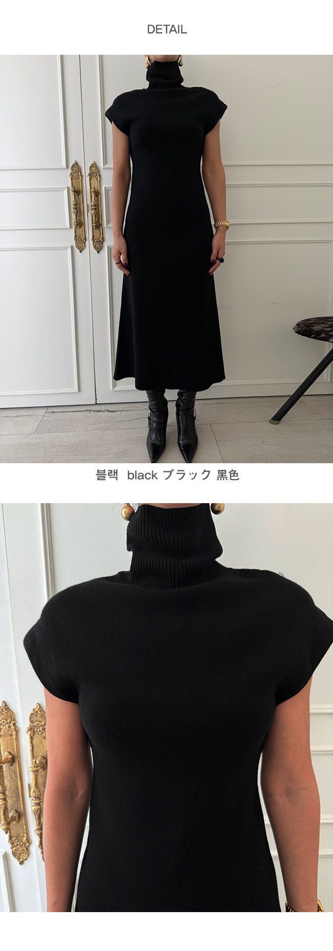 하이넥 캡소매 니트 롱 원피스를 소개해드릴게요.
